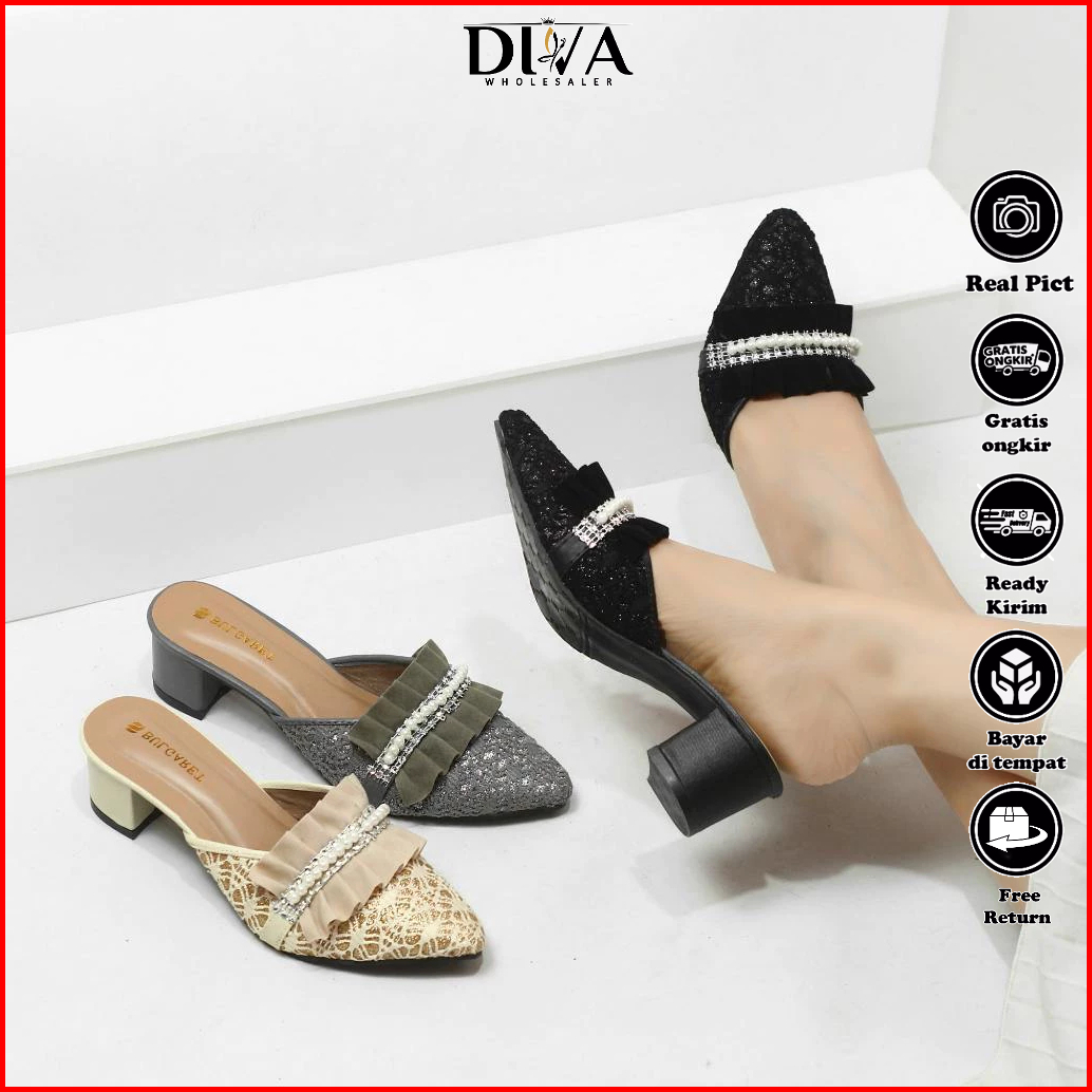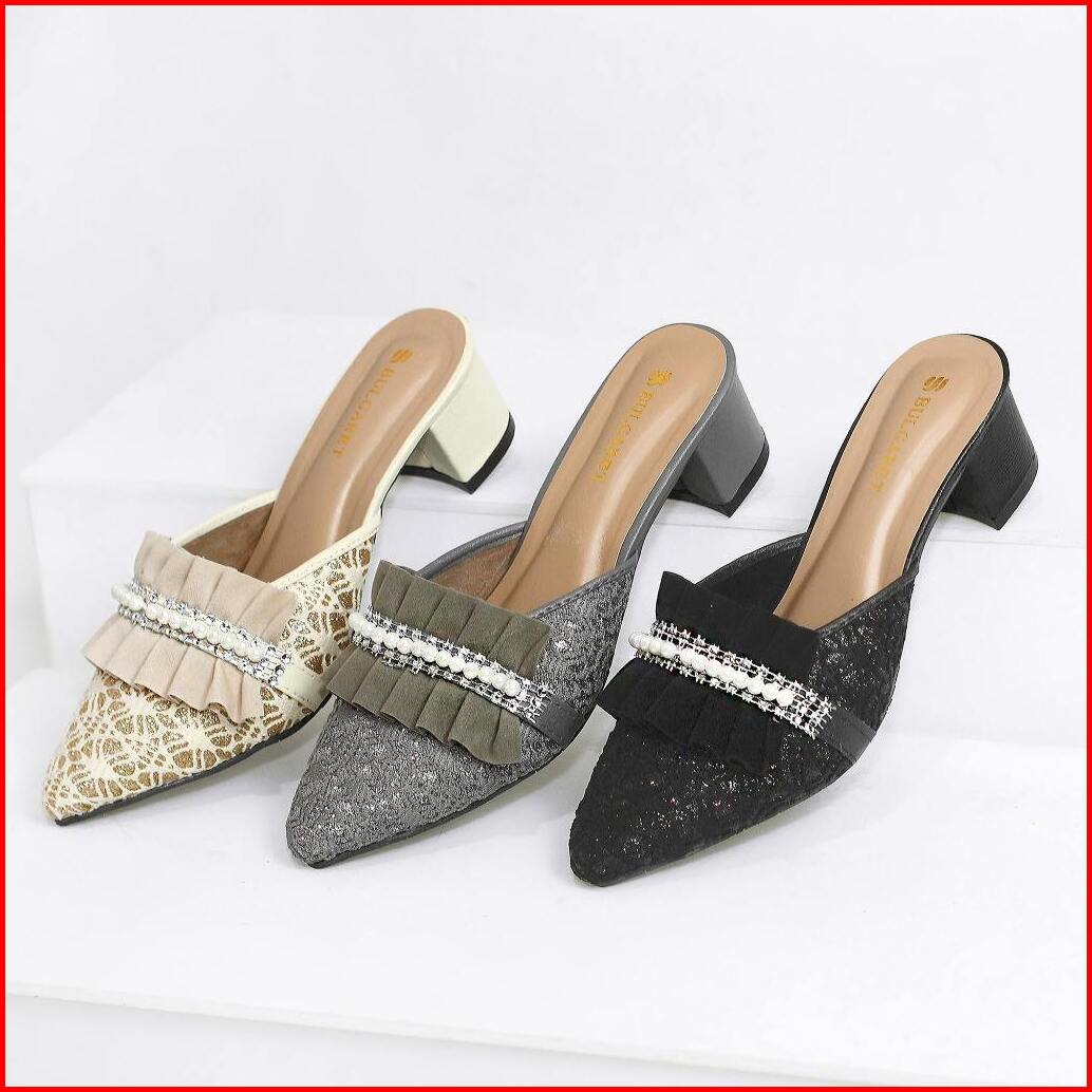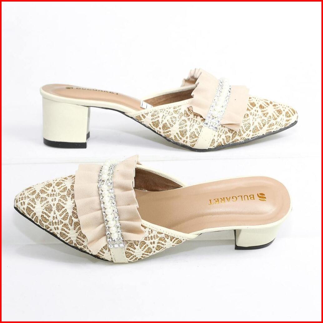 High Heels Wanita Sendal Pesta Mutiara Hak Tahu Brukat R 06
