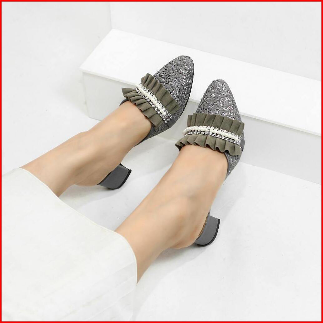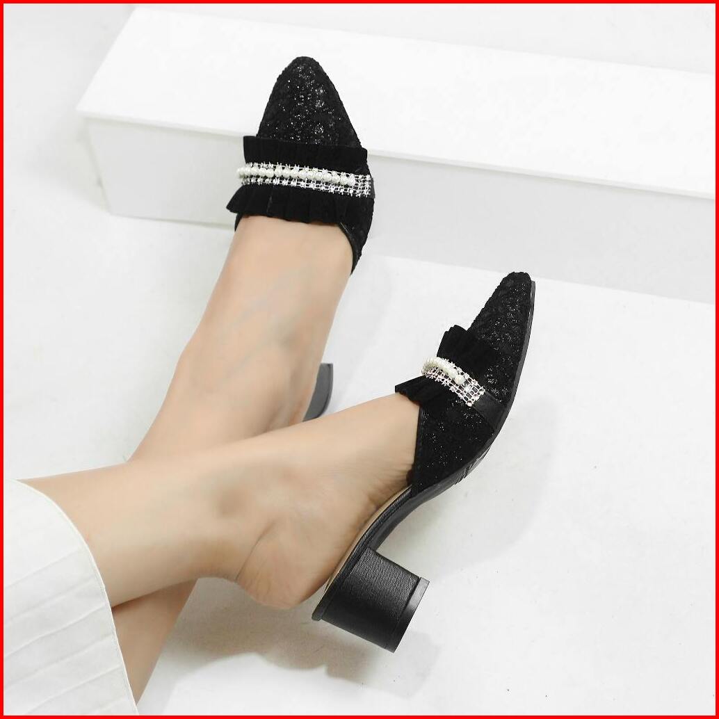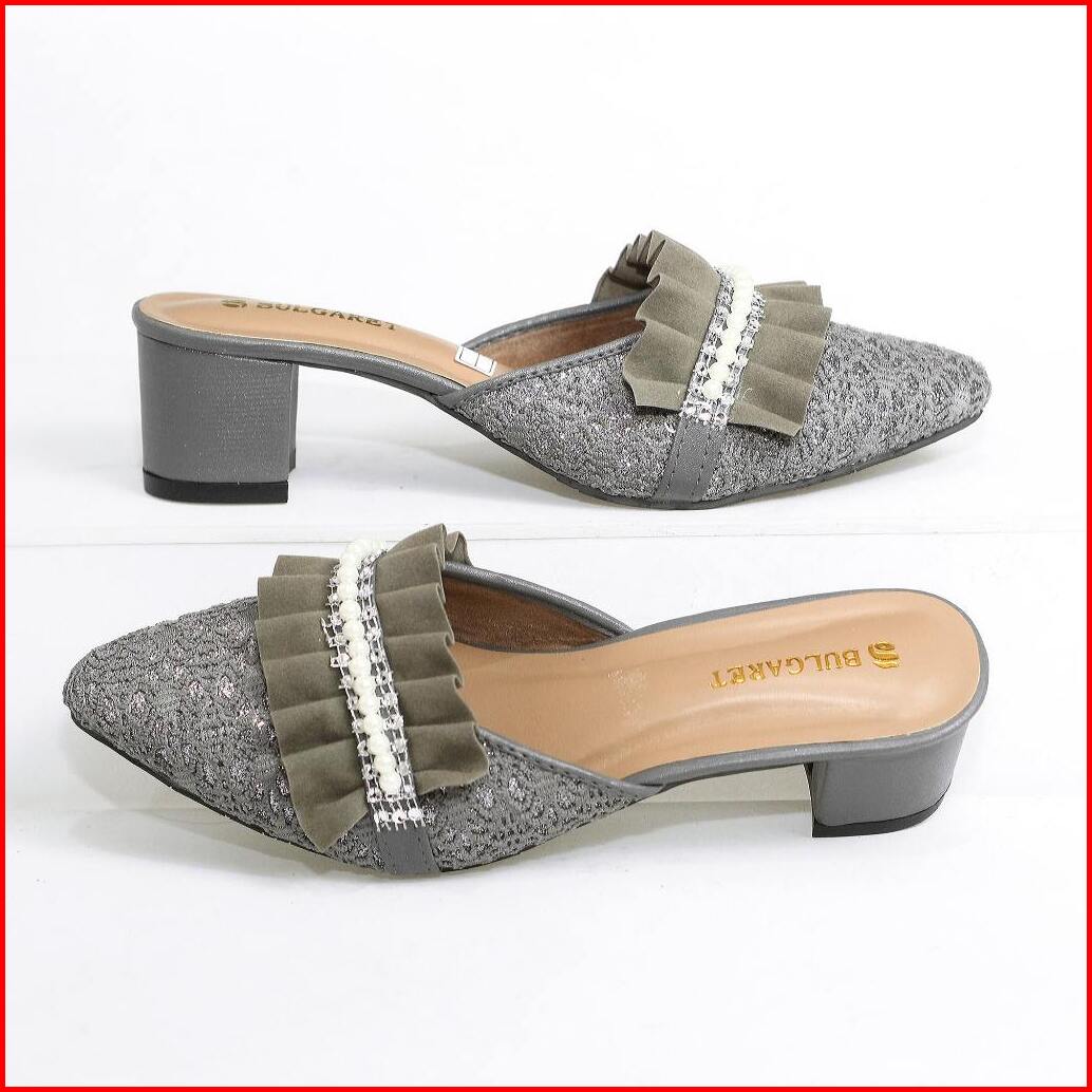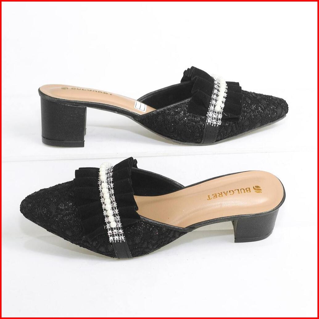 High Heels Wanita Sendal Pesta Mutiara Hak Tahu Brukat R 06