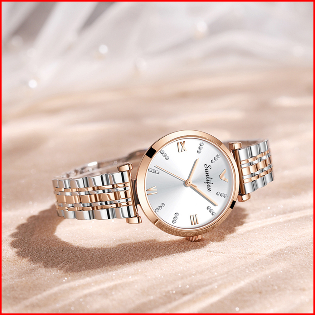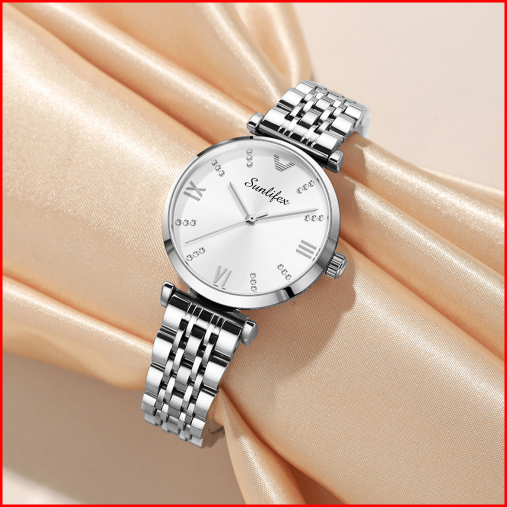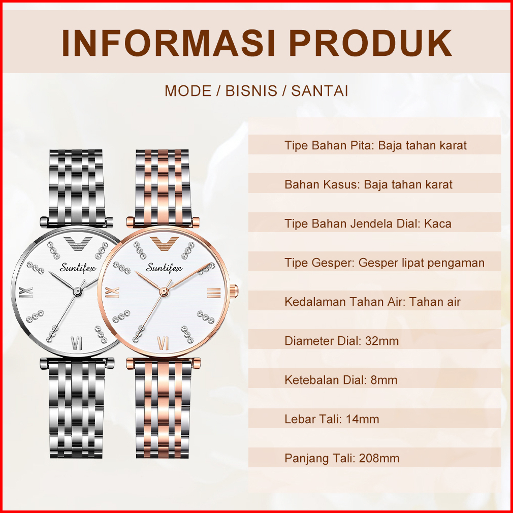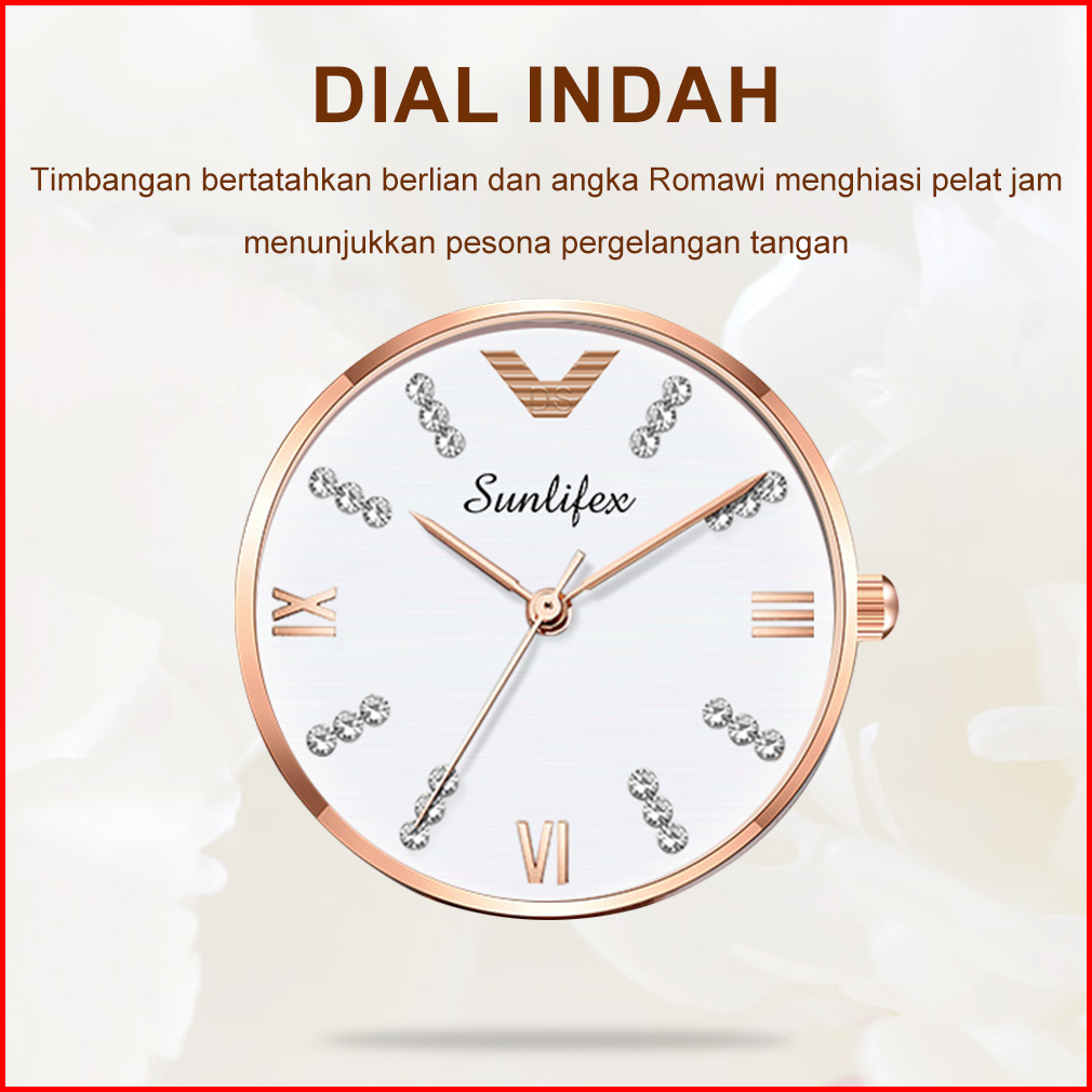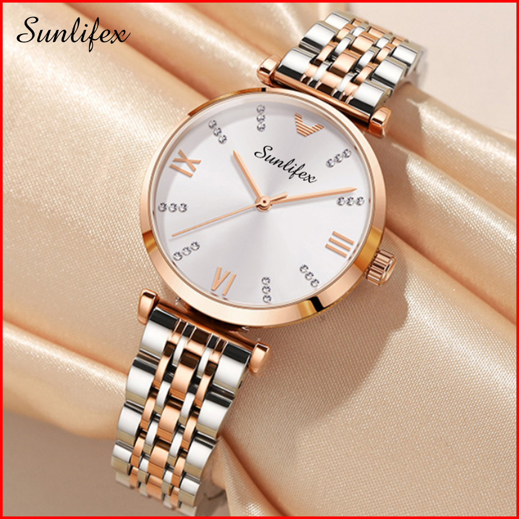 Sunlifex Jam Tangan Wanita Berlian 9018 Original Anggun Santai Wanita Tali Stainless Steel Jam Tangan Cewek