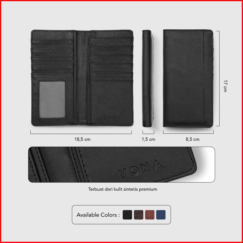 Vona Zion Long Wallet - Dompet Pria Panjang Lipat 2 Extra Slot Kartu Kulit Pu Premium