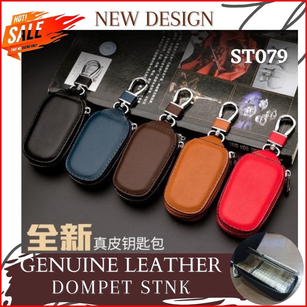 Dompet Stnk Kulit Asli Pria Wanita - Tempat Kunci Remote Mobil Ukuran Kecil 9x4.6cm - Model Gantungan Elegan Ringkas St0