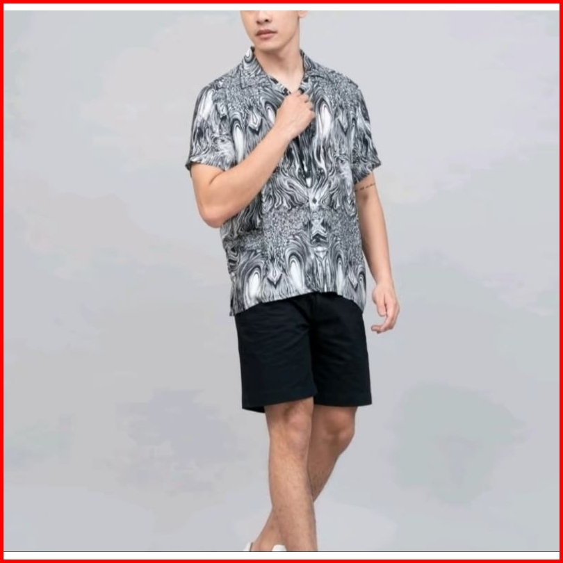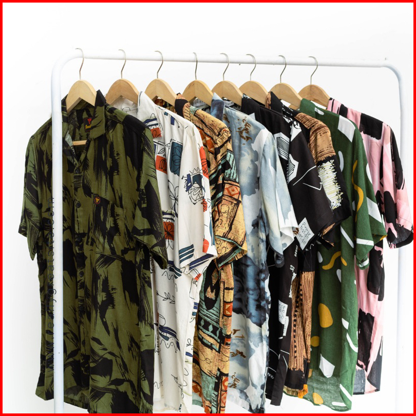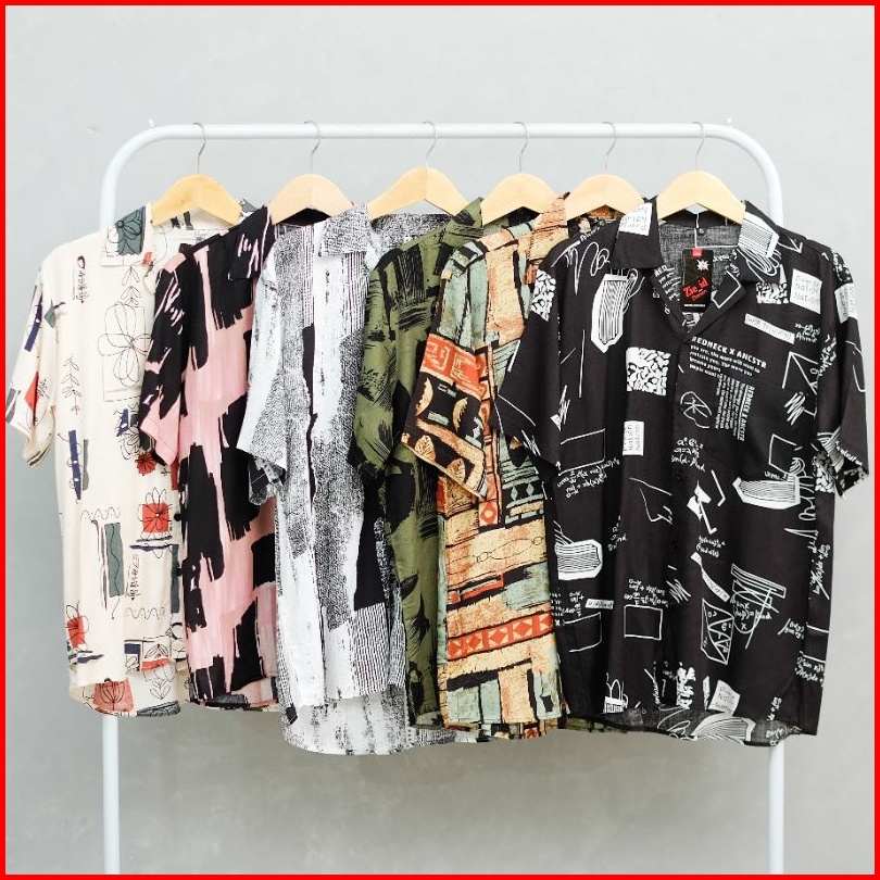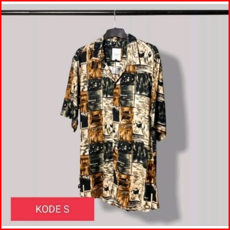 Kemeja Pria Vintage Casual Abstrak Lengan Pendek Retro Pantai Hawai Unisex