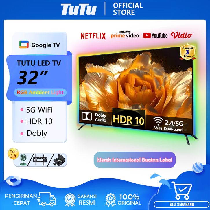 TUTU Smart Google 32 inch | HiFi Soundbar | HD | Google Assistant-Youtube/Netflix-Garansi 3 tahun