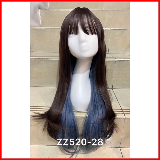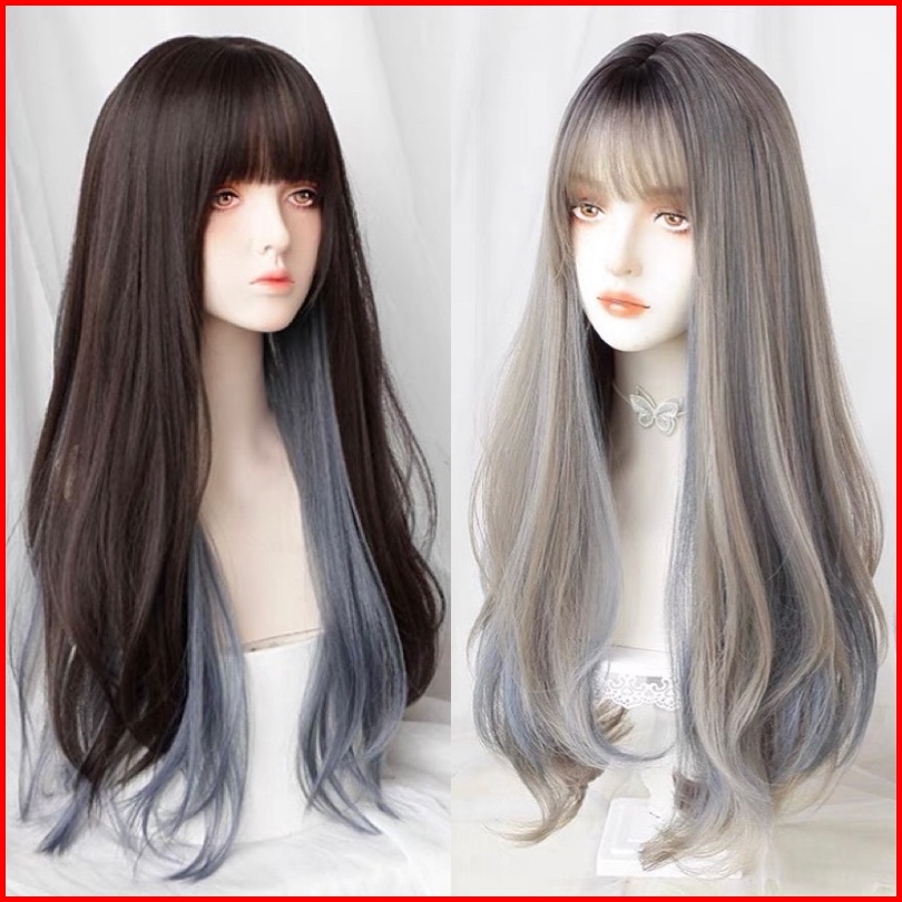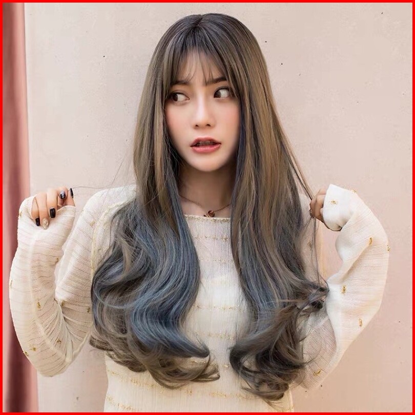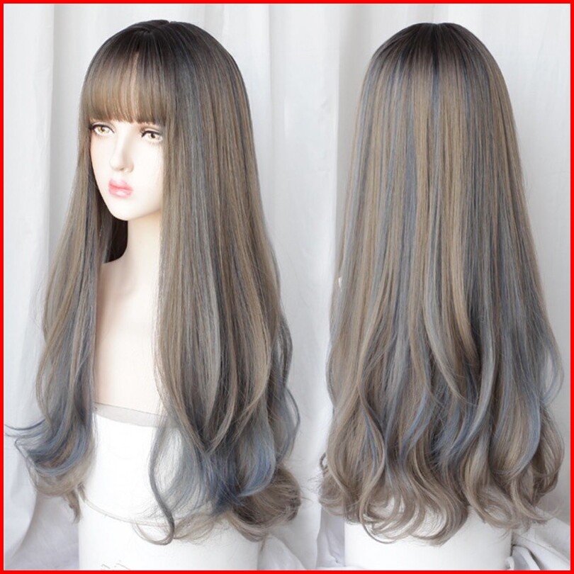 Aegyoshoppe - Zz520-3 Zz520-28 Full Wig Korean Wave Blow Highlight Blue 70 Cm