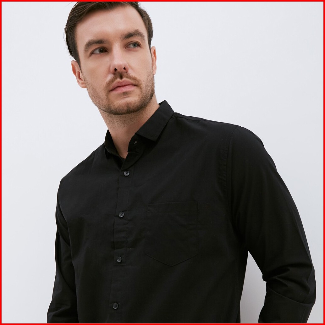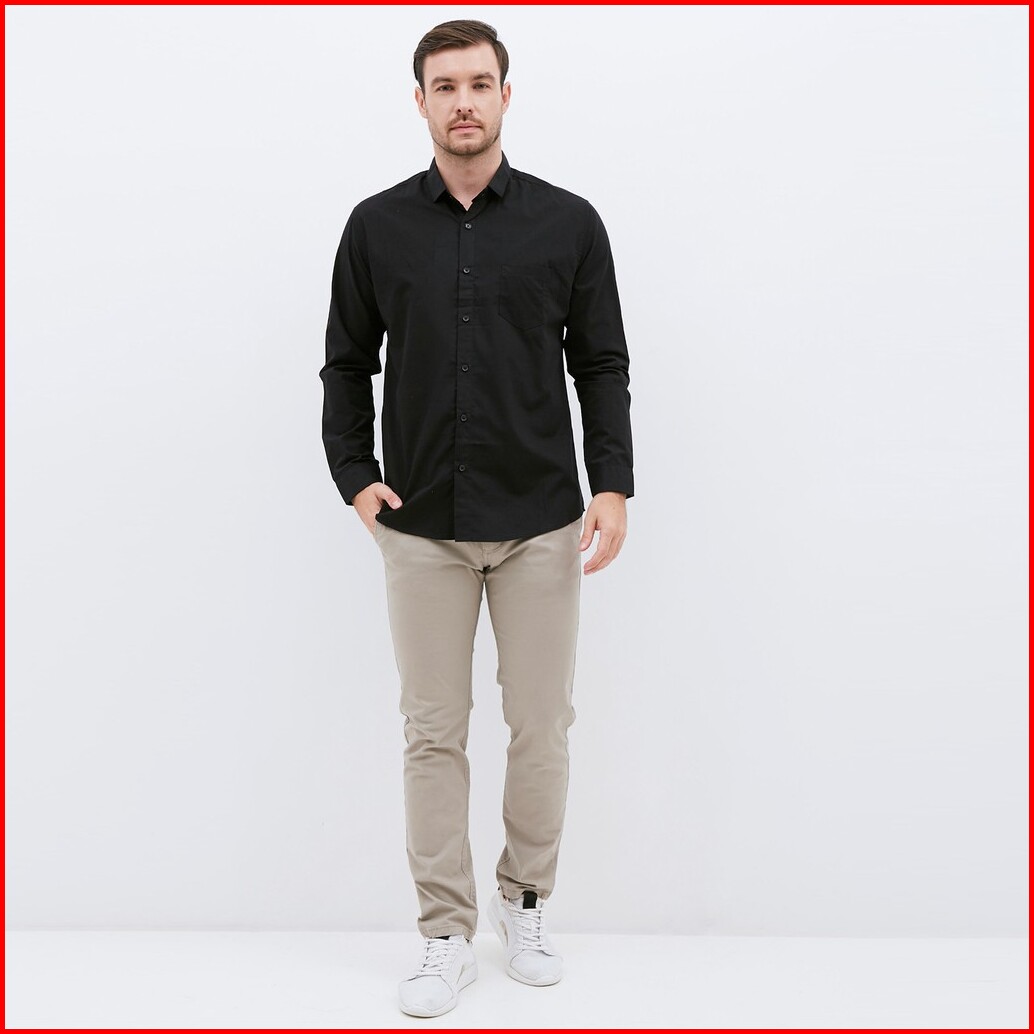 M231 Kemeja Pria Basic Polos Panjang Hitam 1468d