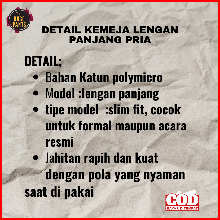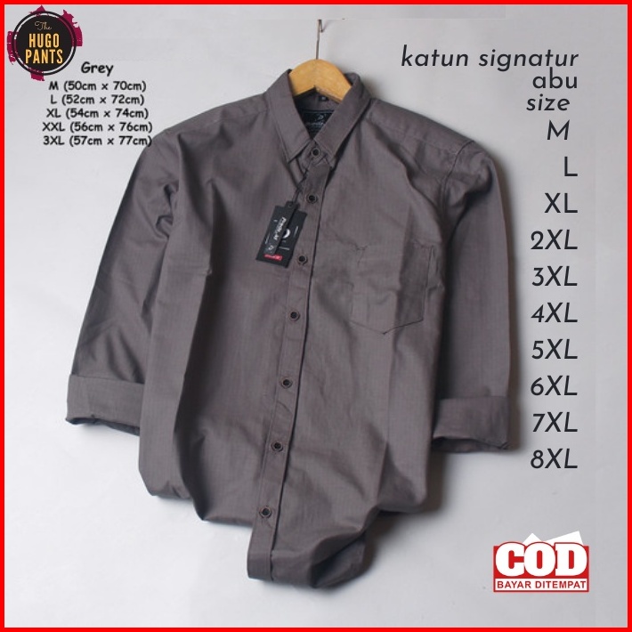Kemeja Formal Pria Jumbo Hitam Lengan Panjang Bahan Katun Puplin Cowok Dewasa