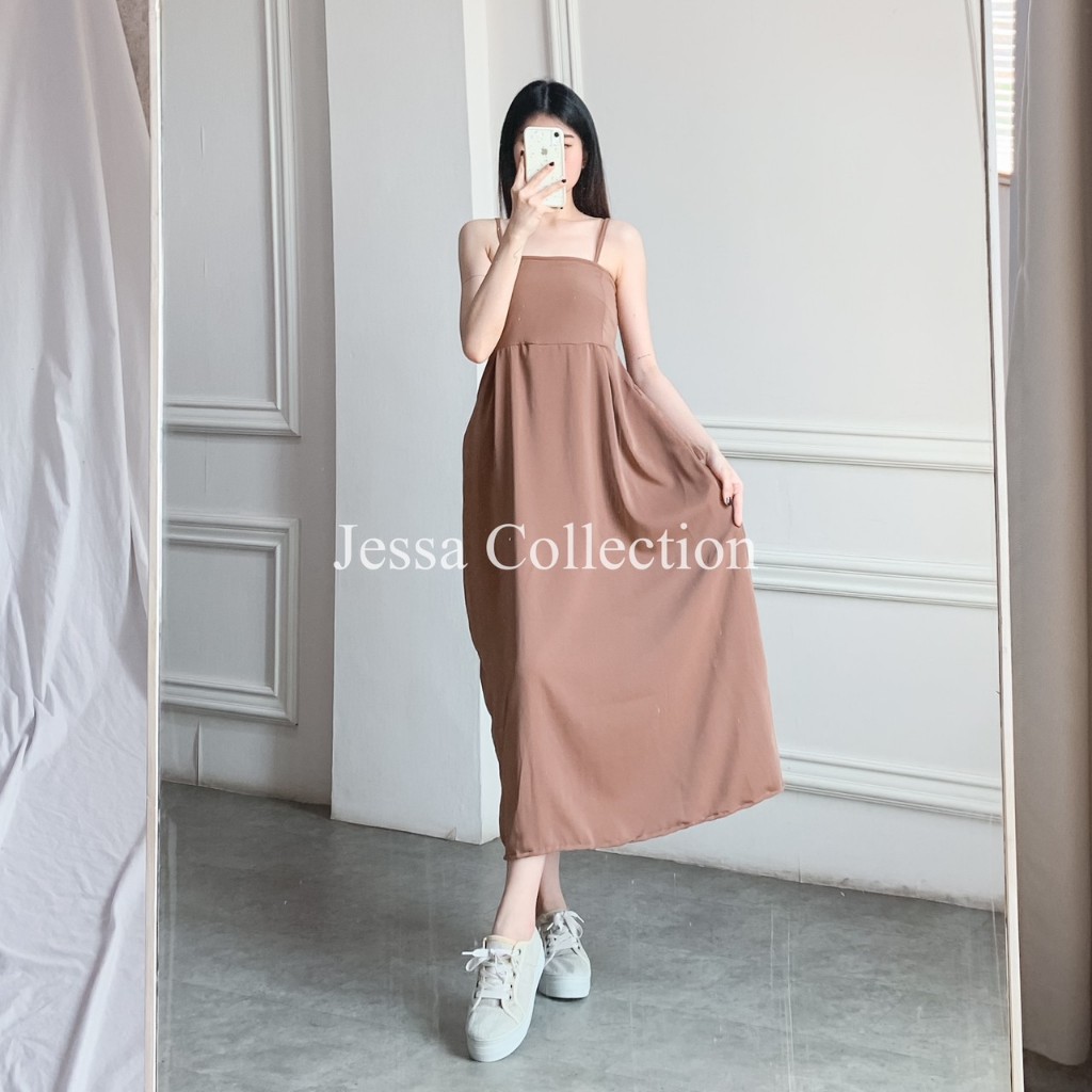 PREMIUM HEVA SLEEVELESS DRESS TH 622 / 757 SEAMLESS STRETCH GAUN BASIC PANJANG WANITA TANPA LENGAN OUTFIT PESTA NATAL
