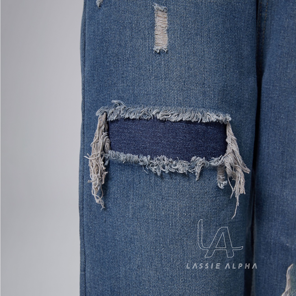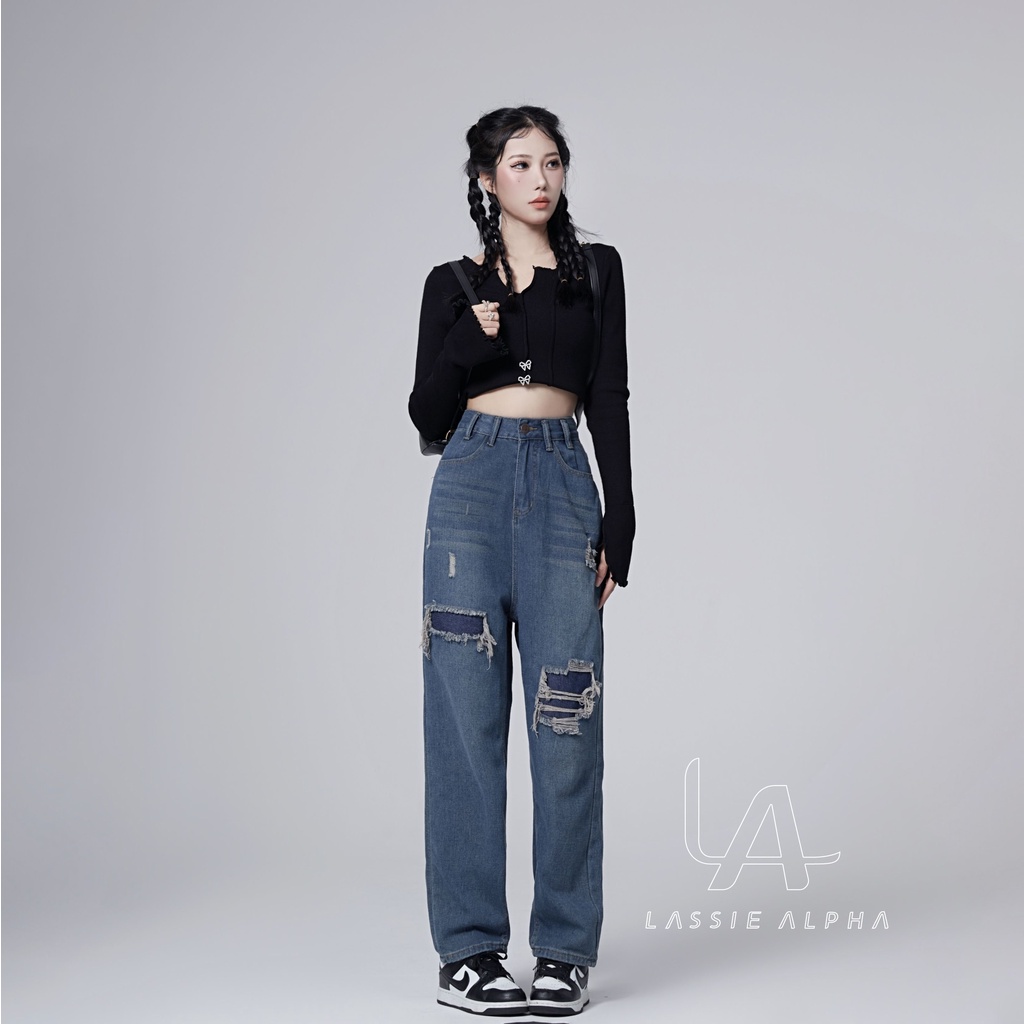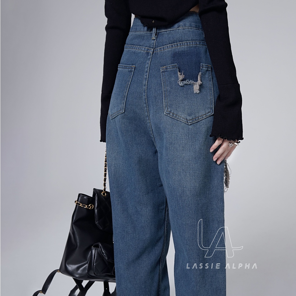 LASSIE ALPHA J40 CELANA JEANS HIGH WAIST WANITA RETRO BIRU TUA DEMIN DESAIN - JAHITAN