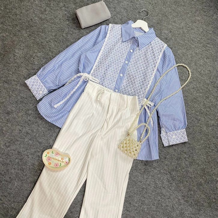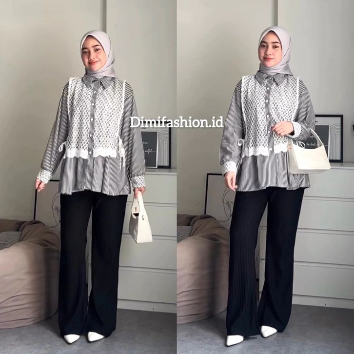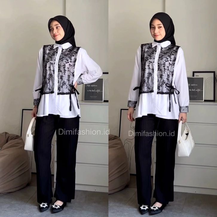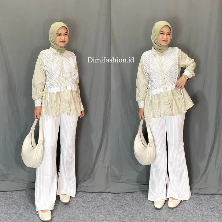 Meluna One Set (Atasan+celana+hijab) Outfit One Set Kekinian Setelan Wanita Korean Style One Set Lebaran