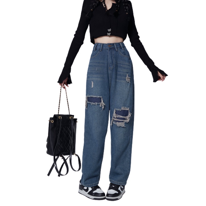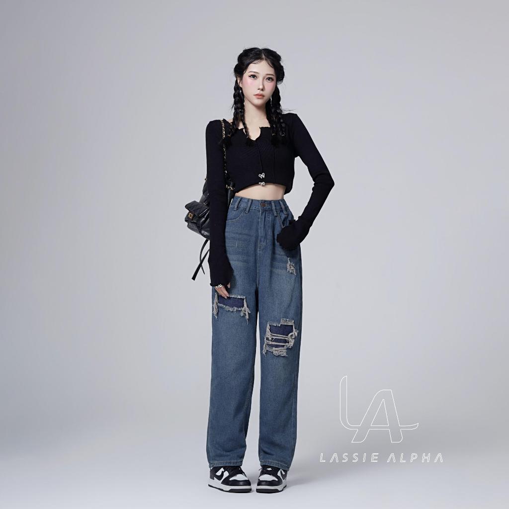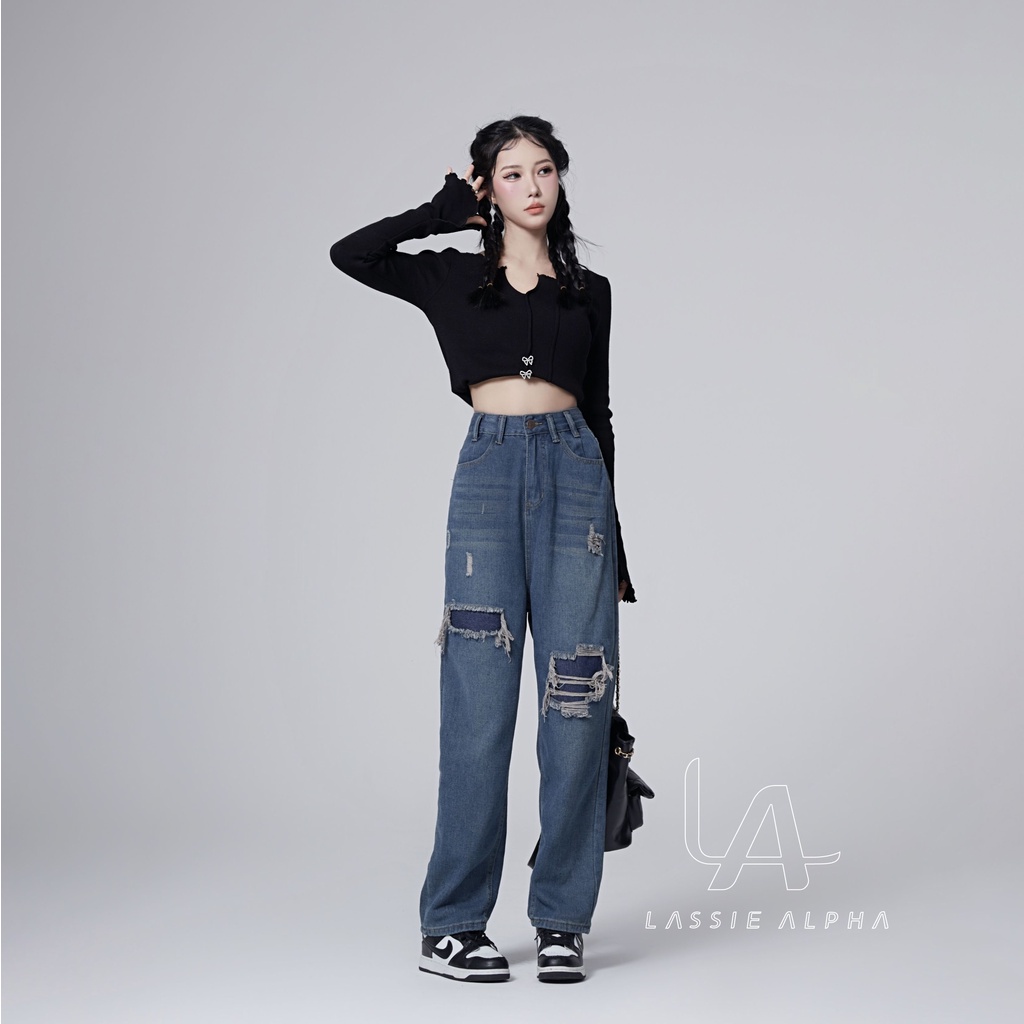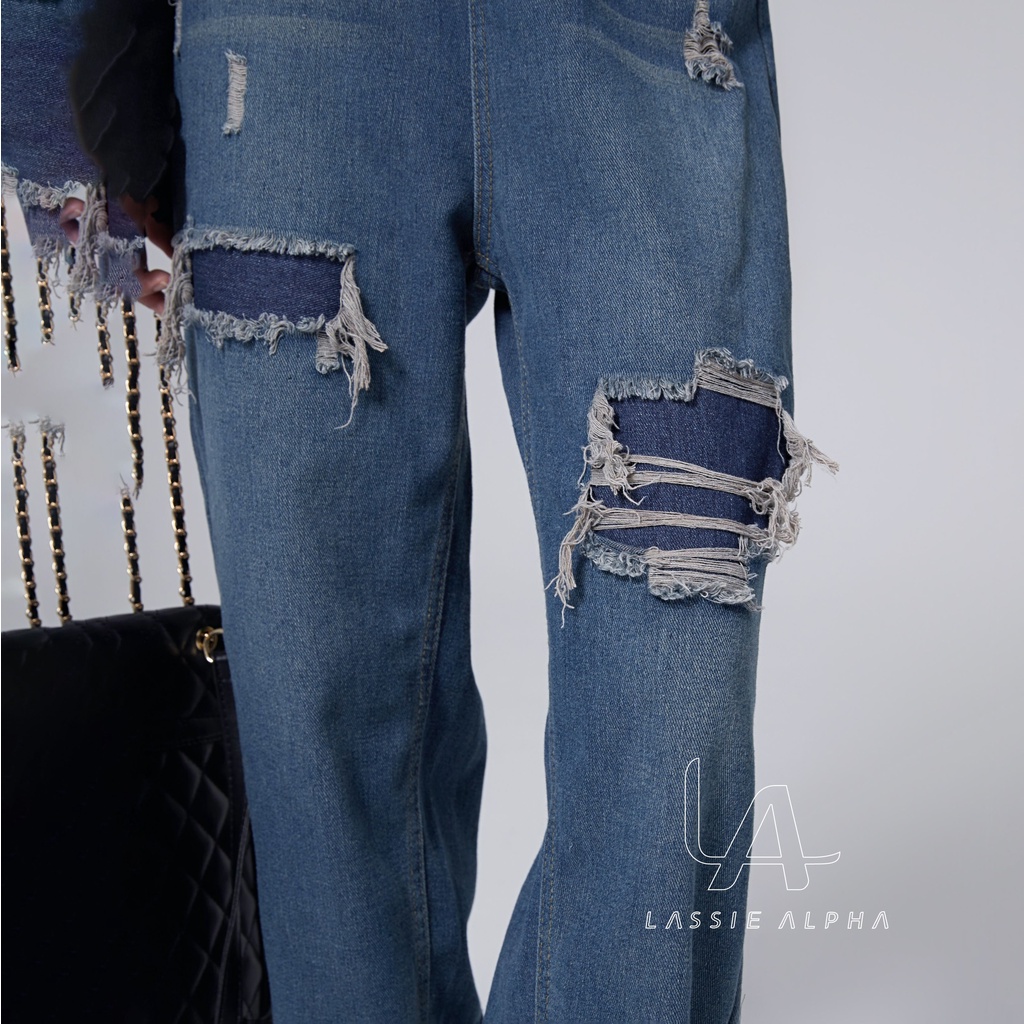LASSIE ALPHA J40 CELANA JEANS HIGH WAIST WANITA RETRO BIRU TUA DEMIN DESAIN - JAHITAN