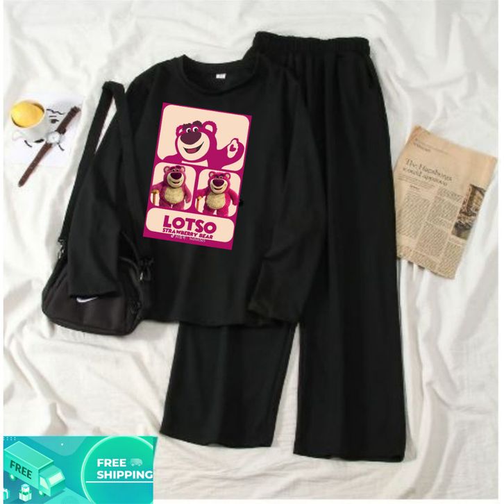 JBF ONE SET PEREMPUAN REMEJA SETELAN KAOS DAN CELANA KULOT LOTSO STRAWBERRY BEAR