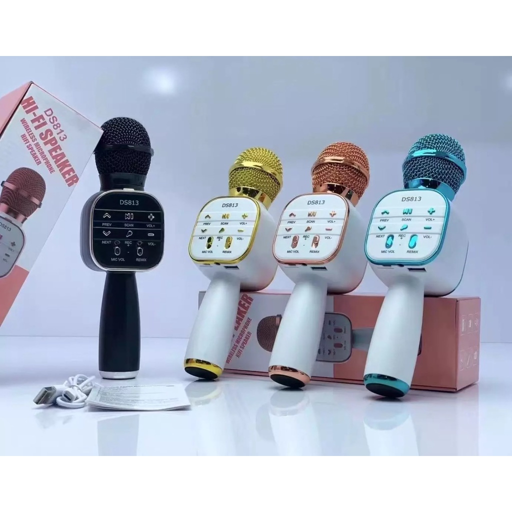 Mic Bluetooth Karaoke Ds 813 Extra Bass Smule Wireless Microphone Led