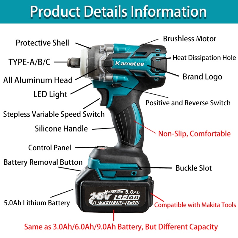 IMPACT KAMOLEE 1800NM WRENCH CORDLESS IMPEK MODERN BOR PEMBUKA BAUT CVT MULTIFUNGSI 2 BATERAI SET KUNCI SOK BRUSHLESS