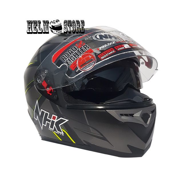 HELM NHK RX 9 MOTIF HAWK BLACK DOFF YELLOW FULL FACE SNI NHK RX9 DOUBLE VISOR ORIGINAL