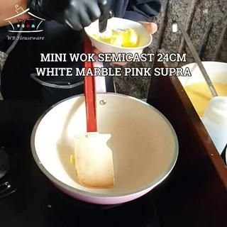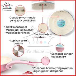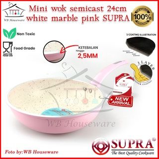 NEW panci supra mini wok 24cm white marble pastel pink / panci masak sayur anti lengket