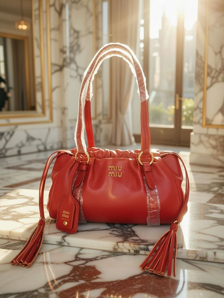 TAS WANITA MIU MIU SERUT LEATHER PREMIUM/TAS MIUMIU JOIE TOTE 33CM LONGHANDLE/SHOULDERBAG TAS BRANDED