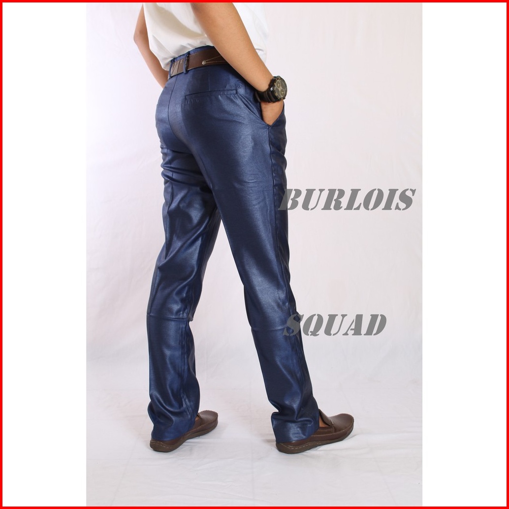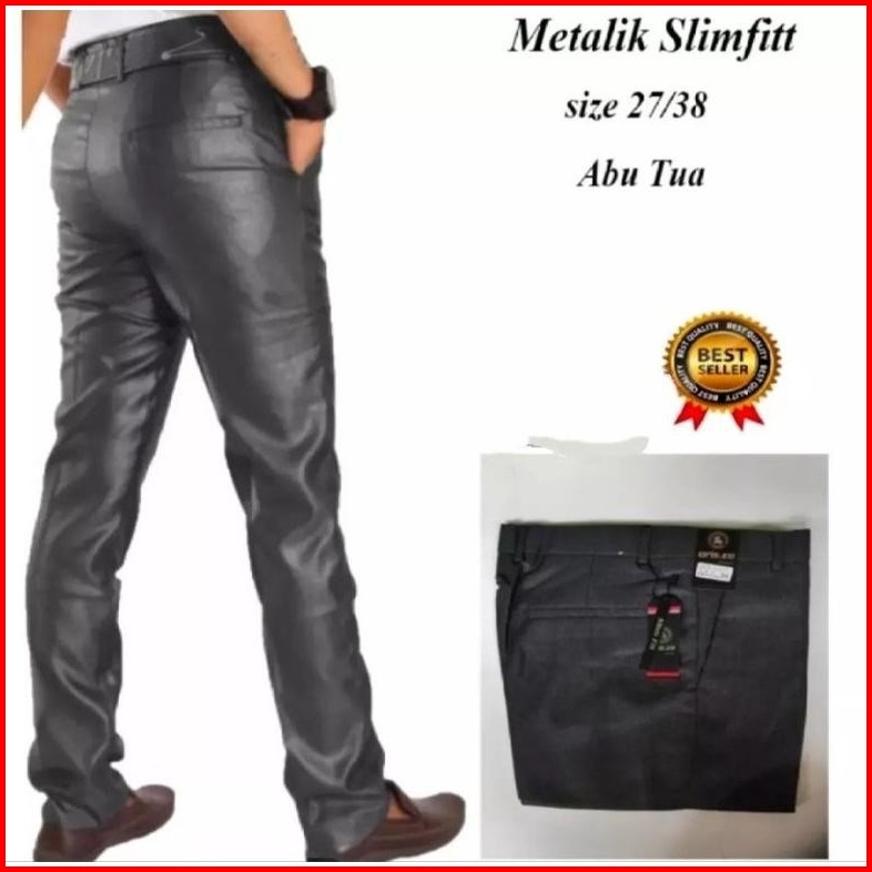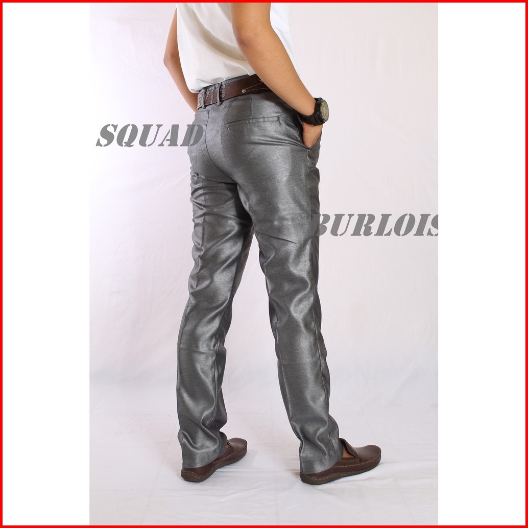 Original Sentiling Celana Kantor Mengkilap Formal Pria Slimfit Kinclong Metalik Bahan Dasar Kain Woll