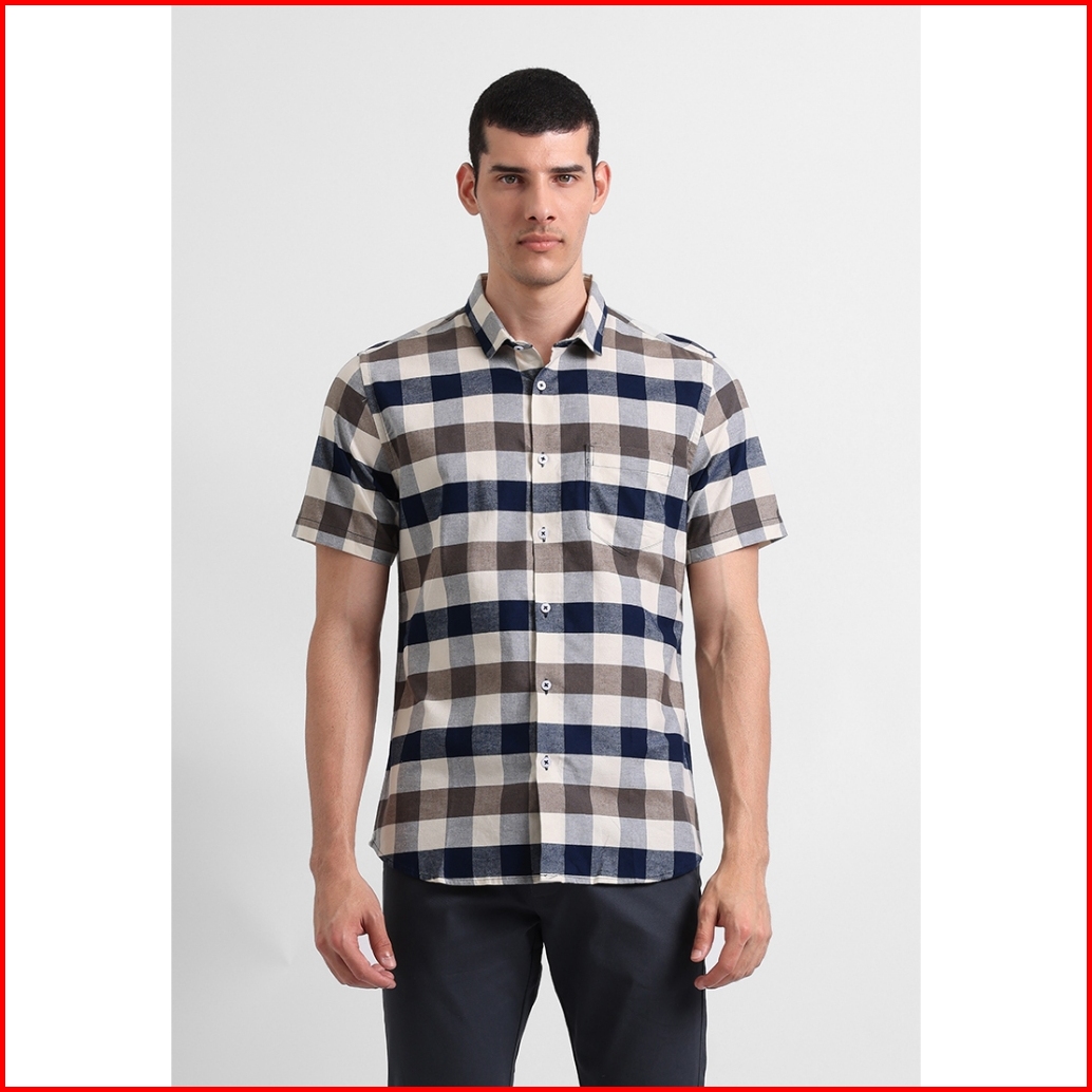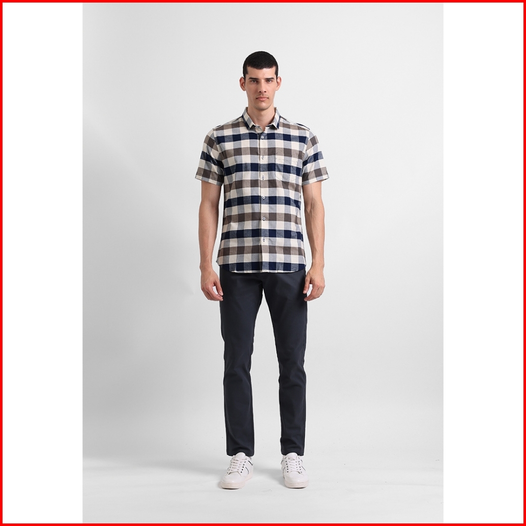 Manzone Kemeja Lengan Pendek Pria Slim Fit Rodrick 3 - Navy