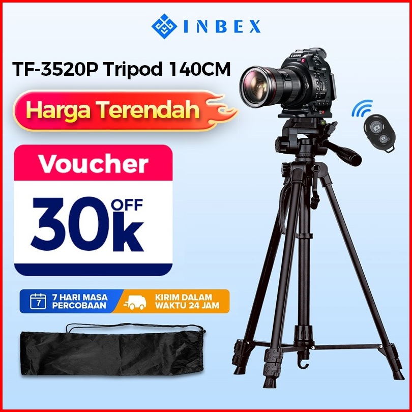 Inbex Tf-3520 Plus Tripod Kamera Dengan Tas Dudukan 140cm Untuk Hadycam Mirrorless Plus Holder Hp