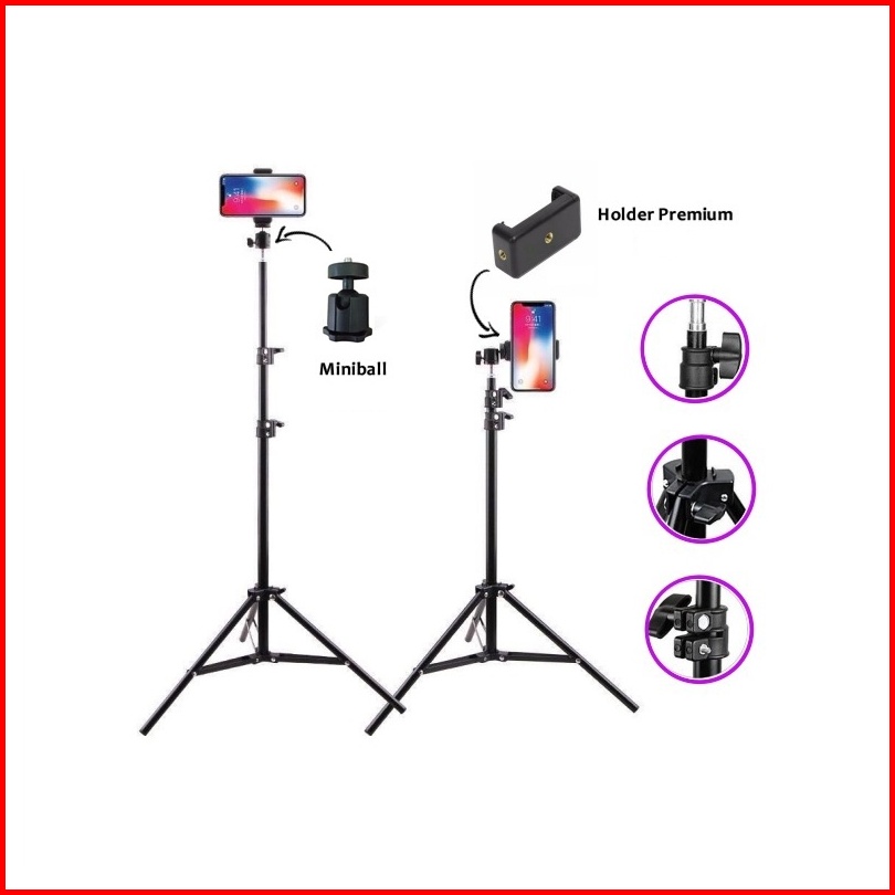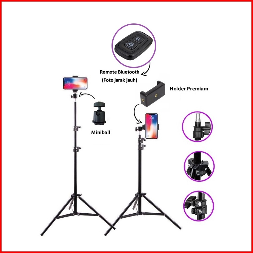 Paket Komplit Tripod 2.1m Mini Ball Head Ball Holder Premium Holder E Tomsis 1 Tombol