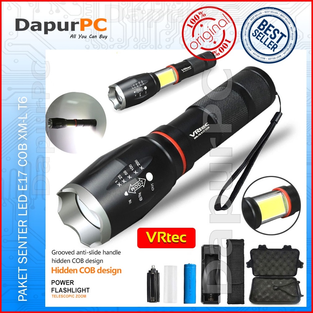 Paket Senter E17 Cob Vrtec Senter Led Torch Cree Xm-l T6 8000 Lumens Bonus Tas