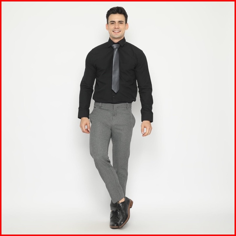 Code Male Celana Bahan Premium Formal Wool Touch Abu Lite Bar01
