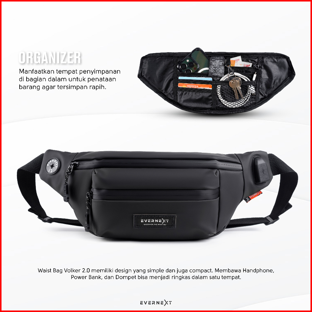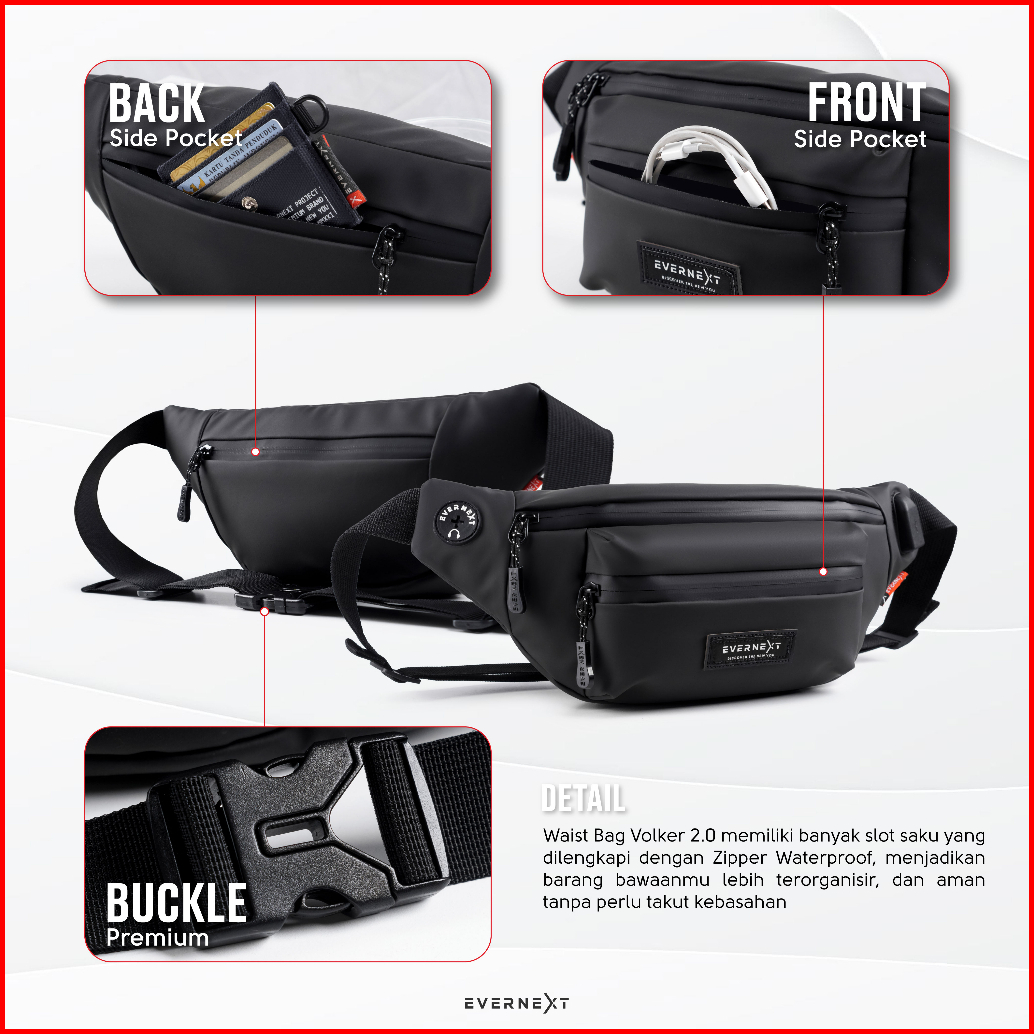 Evernext - Tas Selempang Pria Anti Bara Waist Bag Waterproof Volker Sling Bag Pria Anti Air Waist Bag Distro Pria