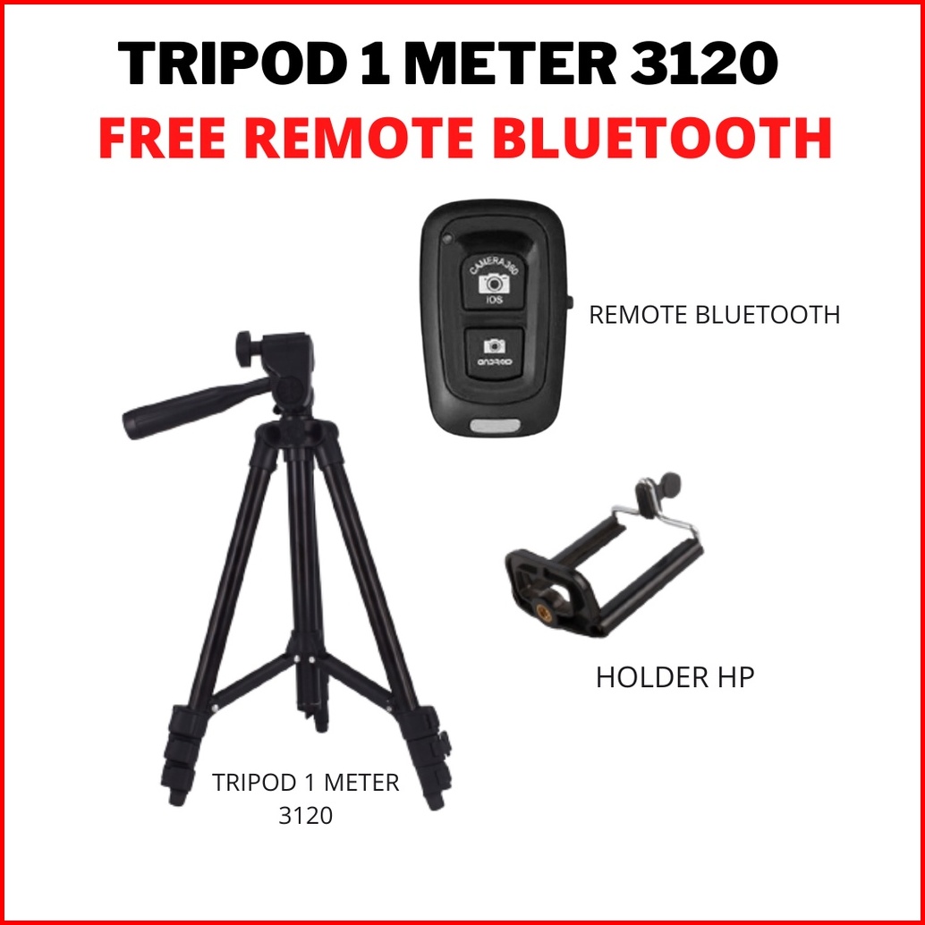 Paket Tripod 1 Meter 3120 Remote Bluetooth Tomsis Wireless Tripod 1 Meter Free Holder U Dan Remote Wireless