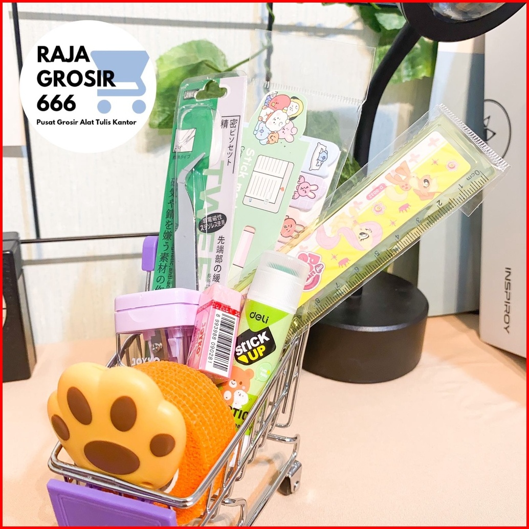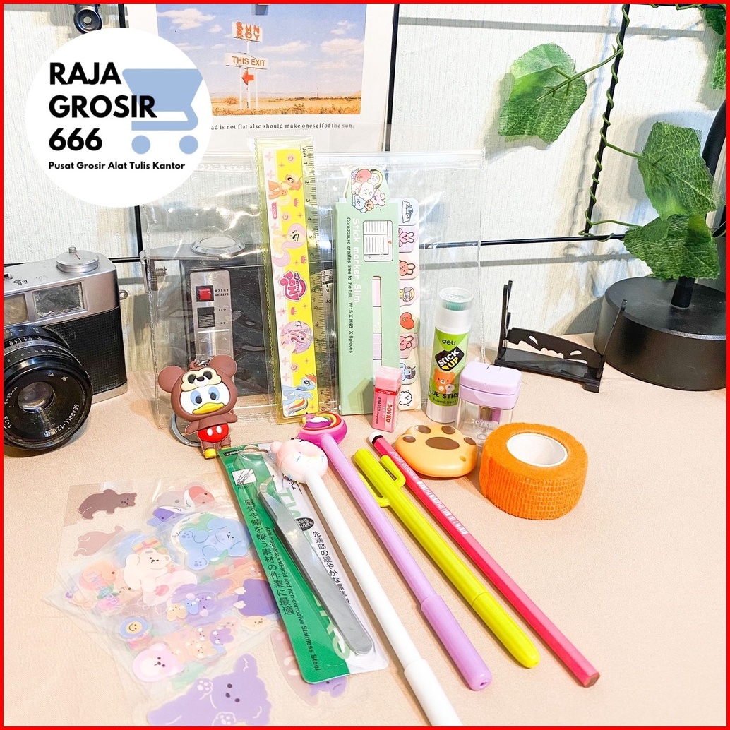 Pouch Set Alat Tulis Sticker Pensil Gantungan Kunci Pulpen Pena Pensil Penggaris Sekolah Sticky Notes Penjepit Sticker C