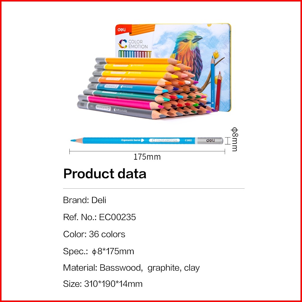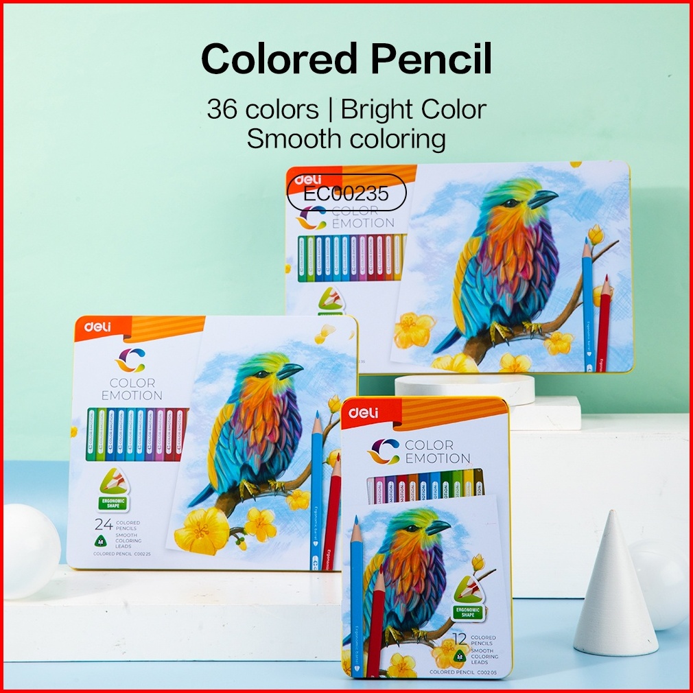 Deli Pensil Warna Celup Halus 12 24 36 Warna Bentuk Segitiga Ergonomis Ec00205 Ec00225 Ec00235