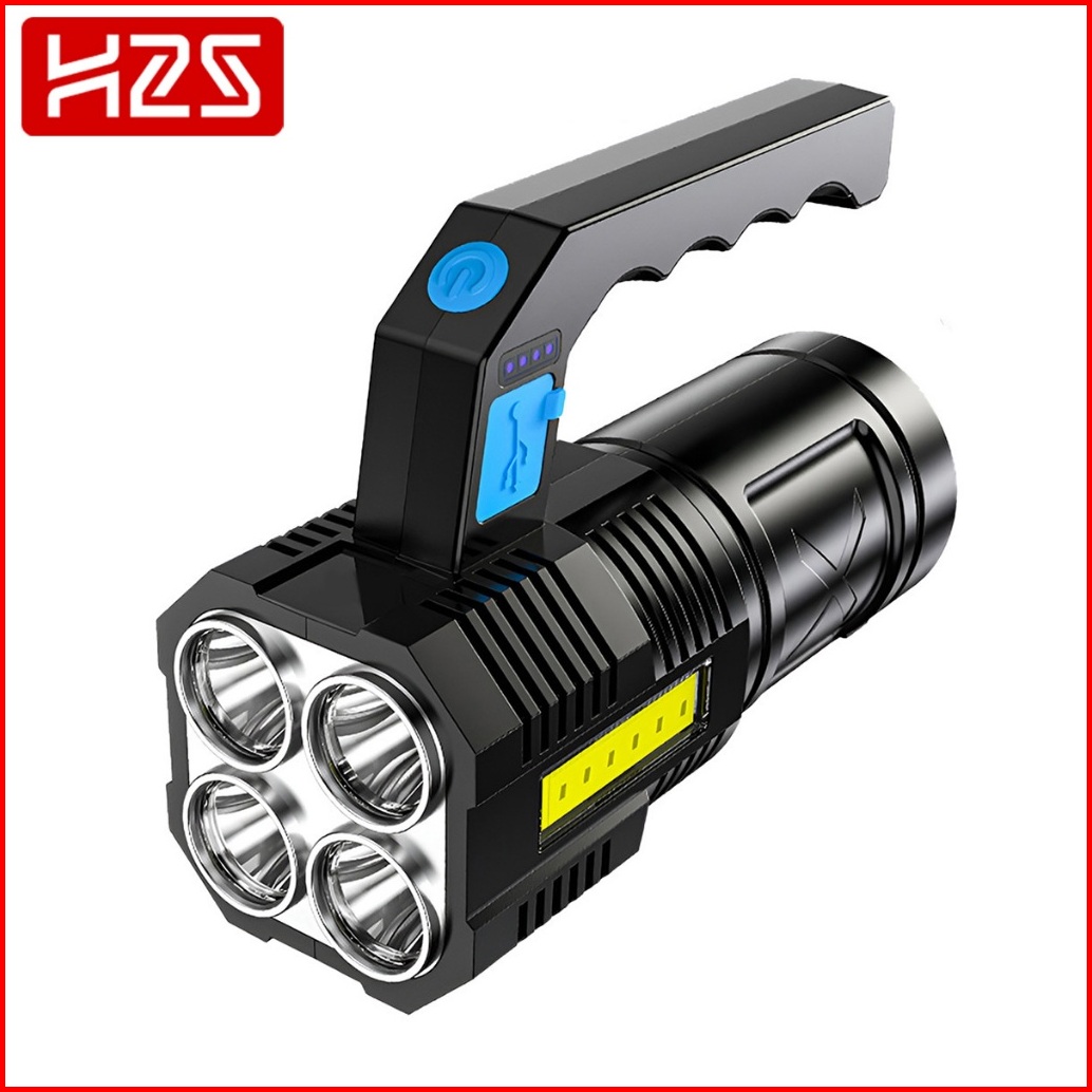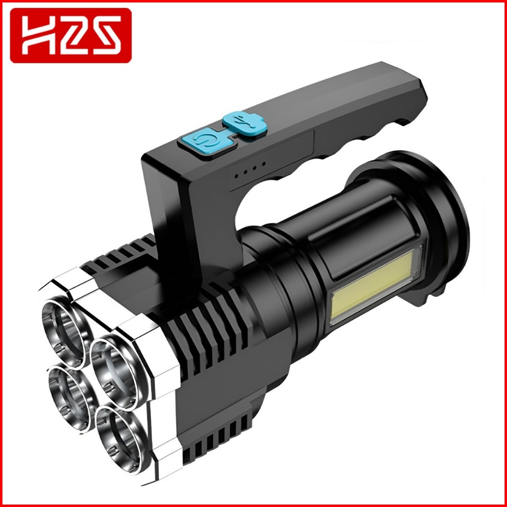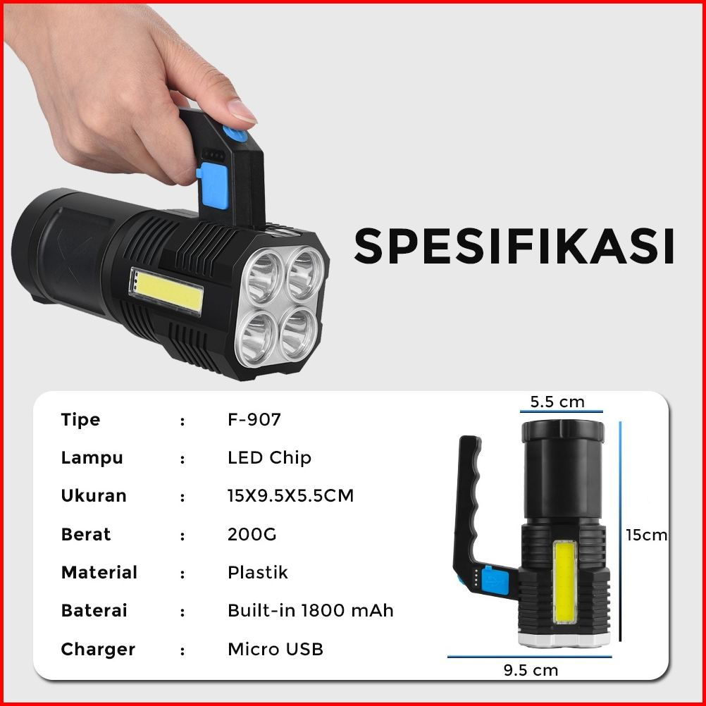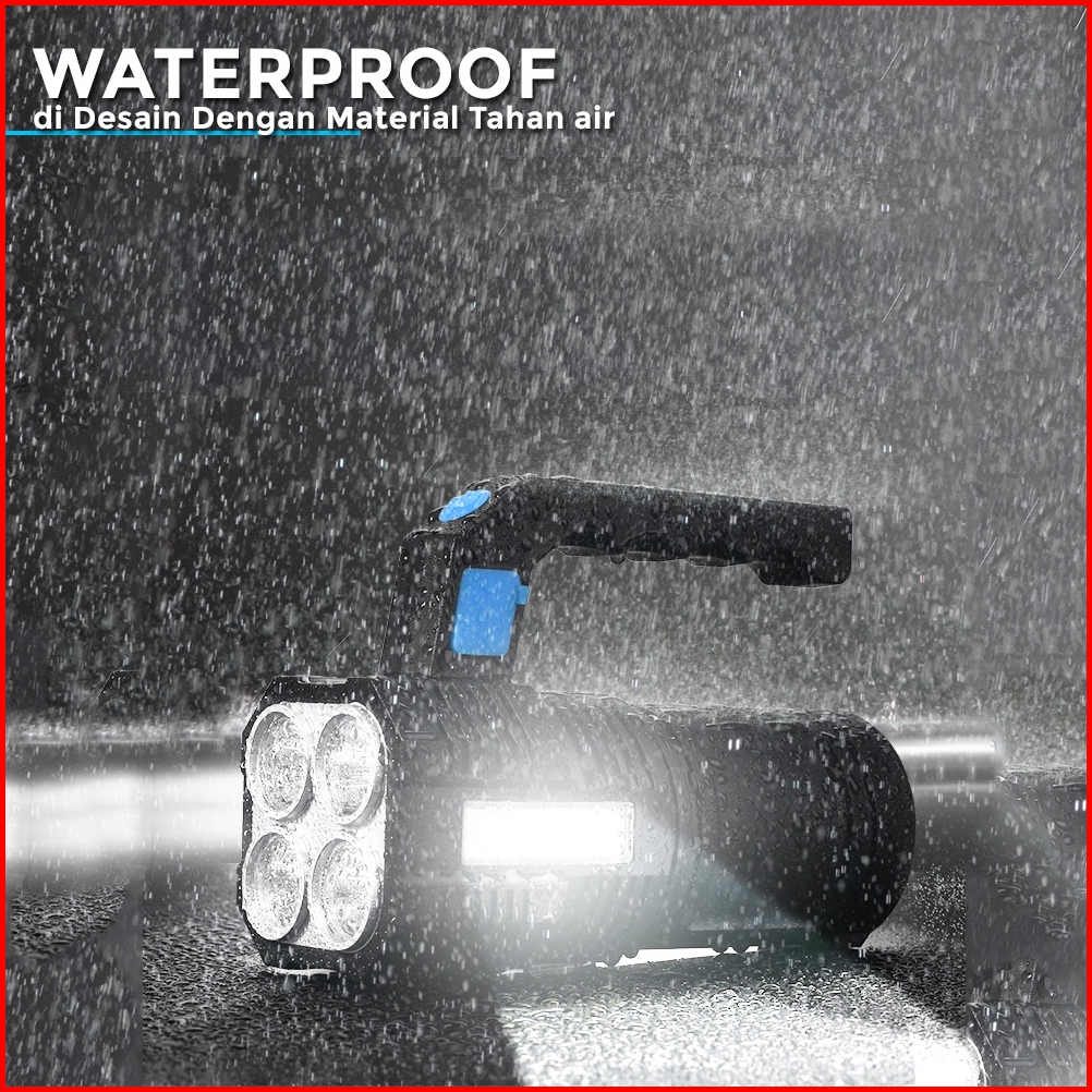 Senter Led Sorot Jarak Jauh 4 Led Dan Cob Light Super Terang Anti Air Waterproof Senter Camping Berburu