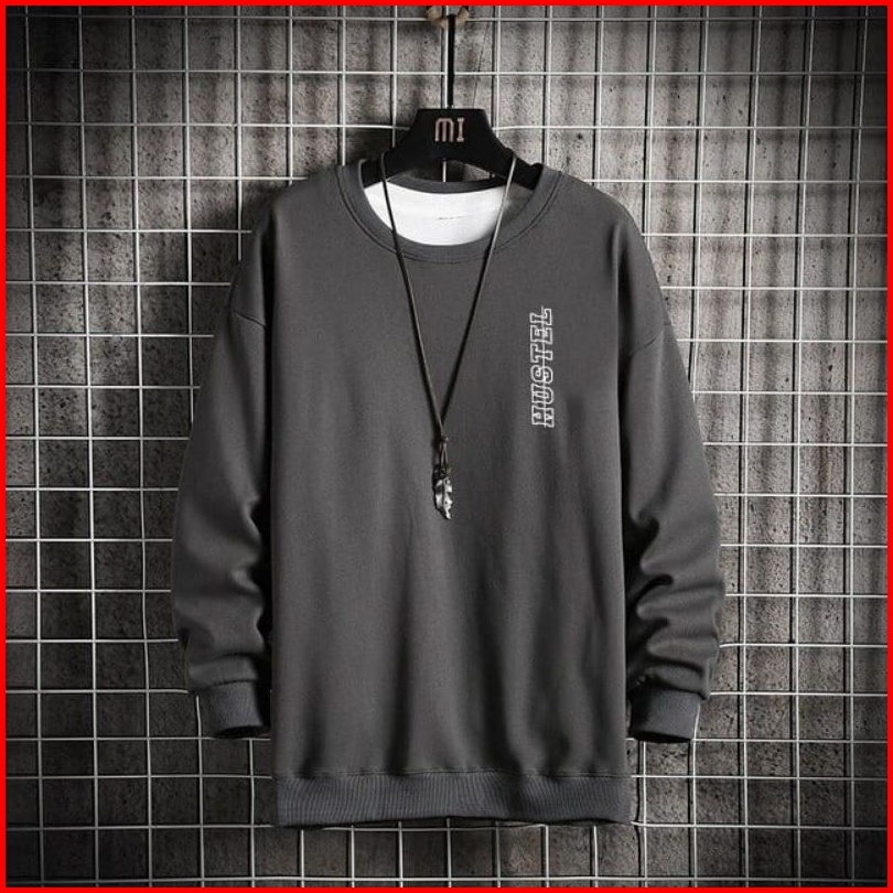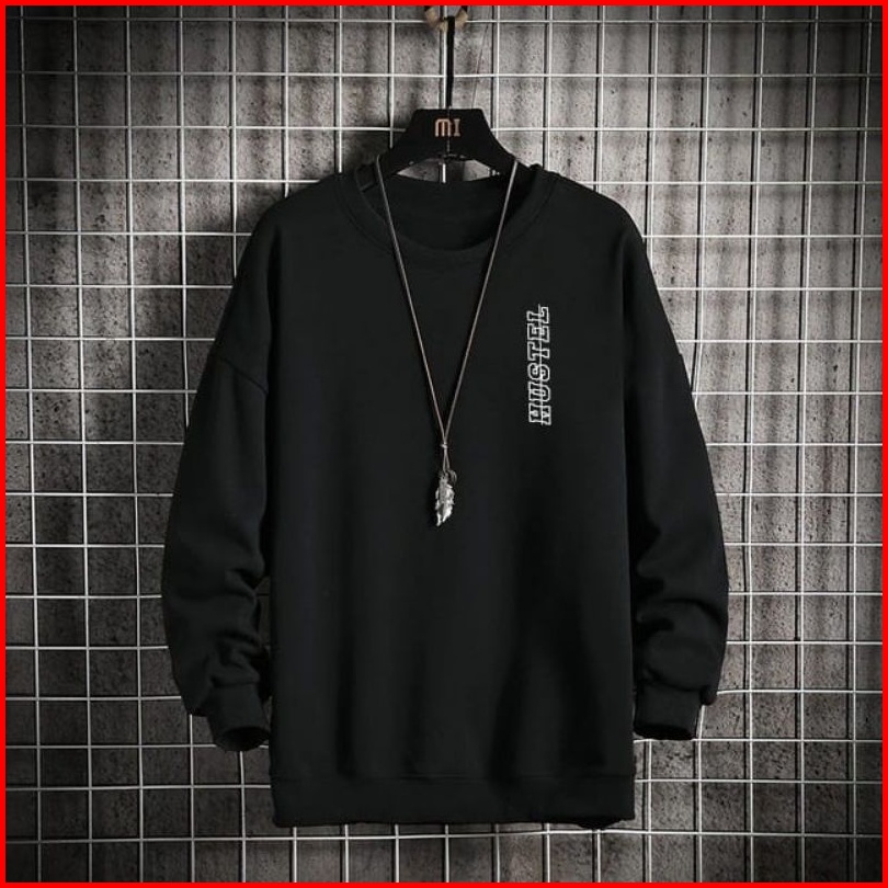Sweater Crewneck Pria Wanita Hustel Terbaru Basic Kekinian Termurah Bahan Fleece Tebal