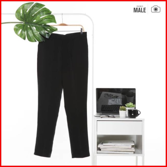 Code Male Celana Bahan Premium Hitam Formal Straight Cut Slim Fit