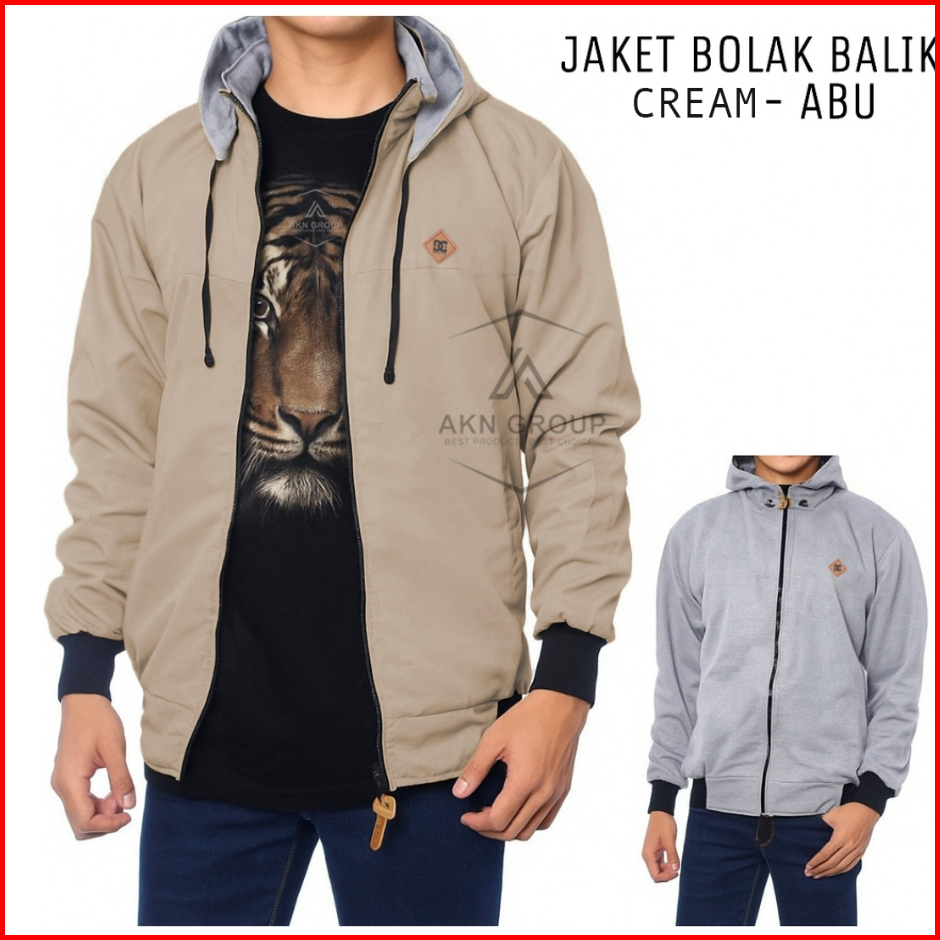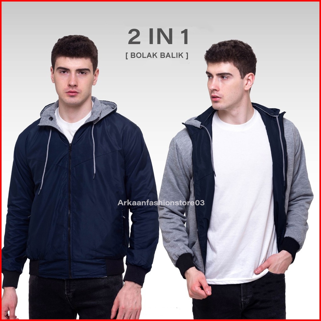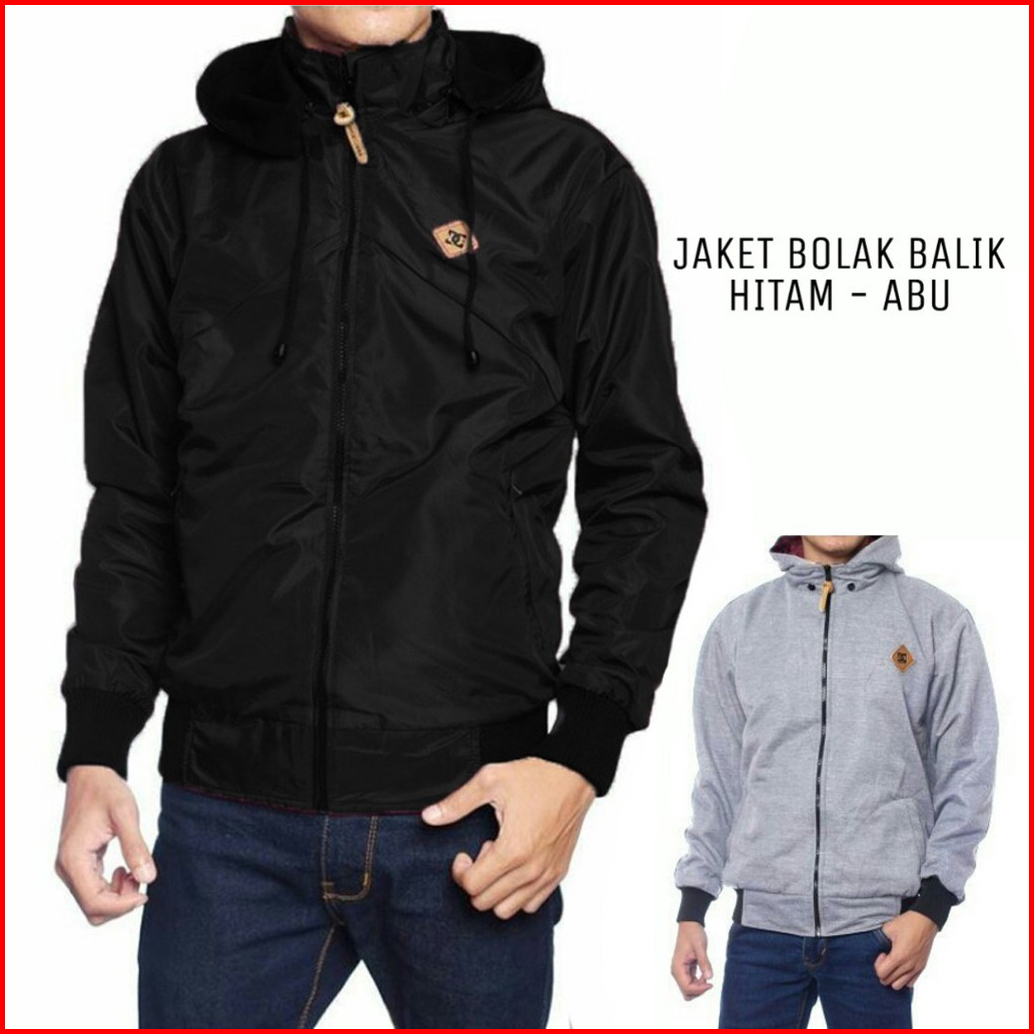 Jaket Bolak Balik Pria Bb 2in1 Parasut Anti Air Fleece Size M L Xl
