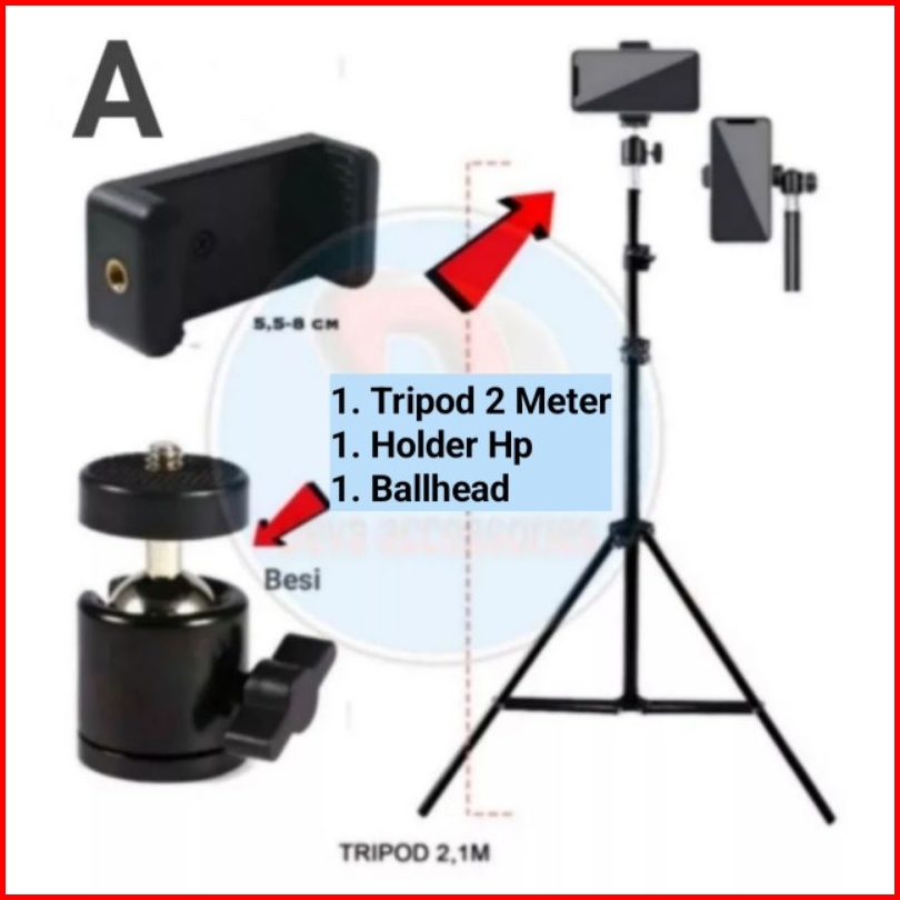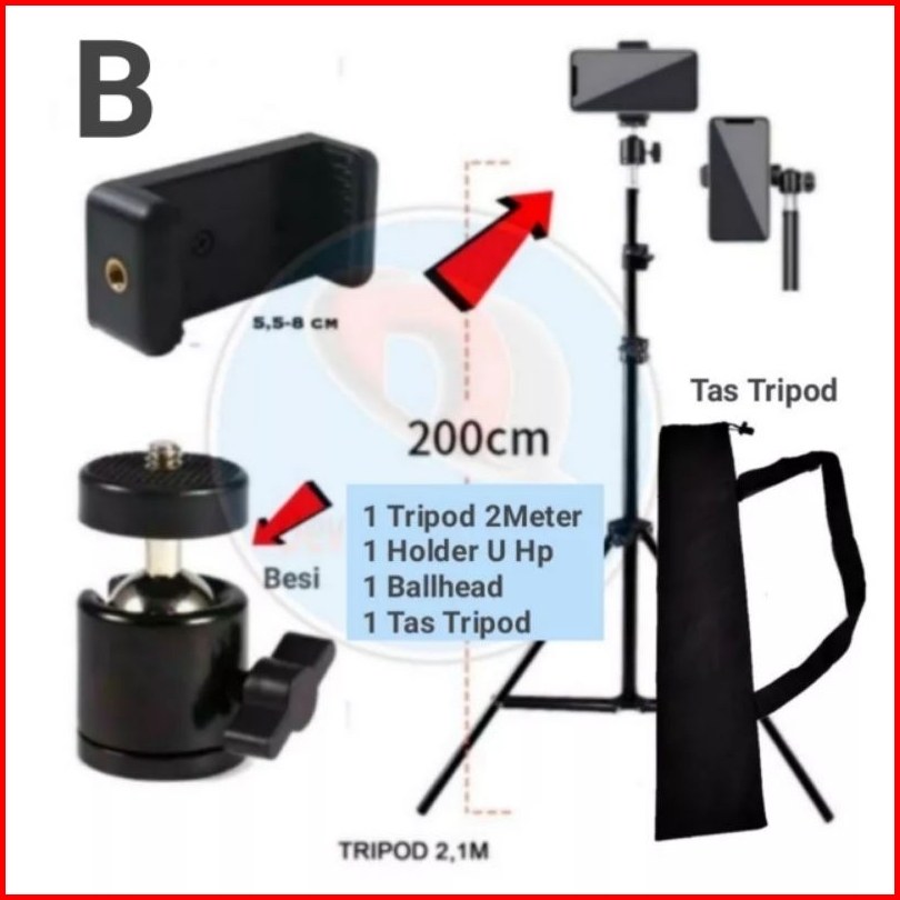Tripod 2 Meter Tripod Hp Camera Holder U Hp Ballhead Besi
