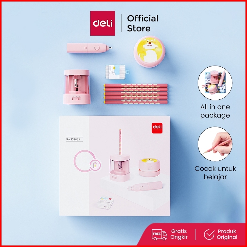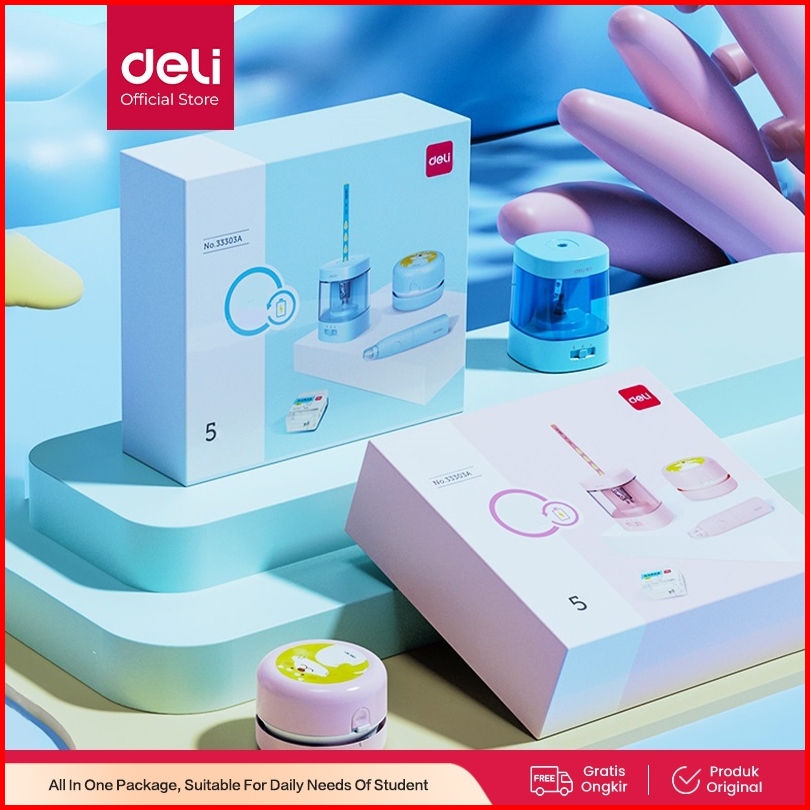 Deli Electric Stationery Set Set Alat Tulis Elektrik Rautan Penghapus Vacuum Pensil 5 In 1 33303a