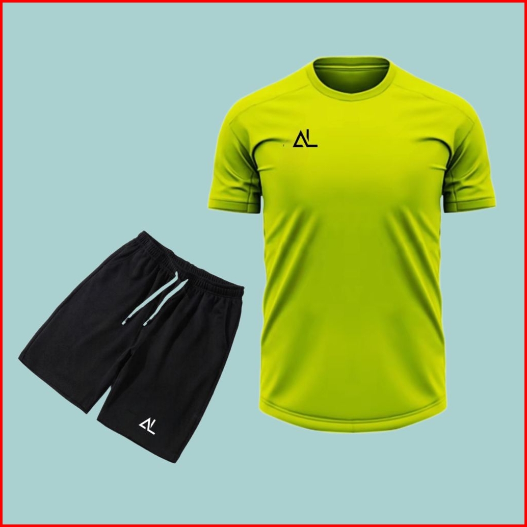 Stelan Olahraga Pria Baju Jersey Dan Celana Pendek Sport Futsal Lari Sepak Bola Training Kaos Olahraga