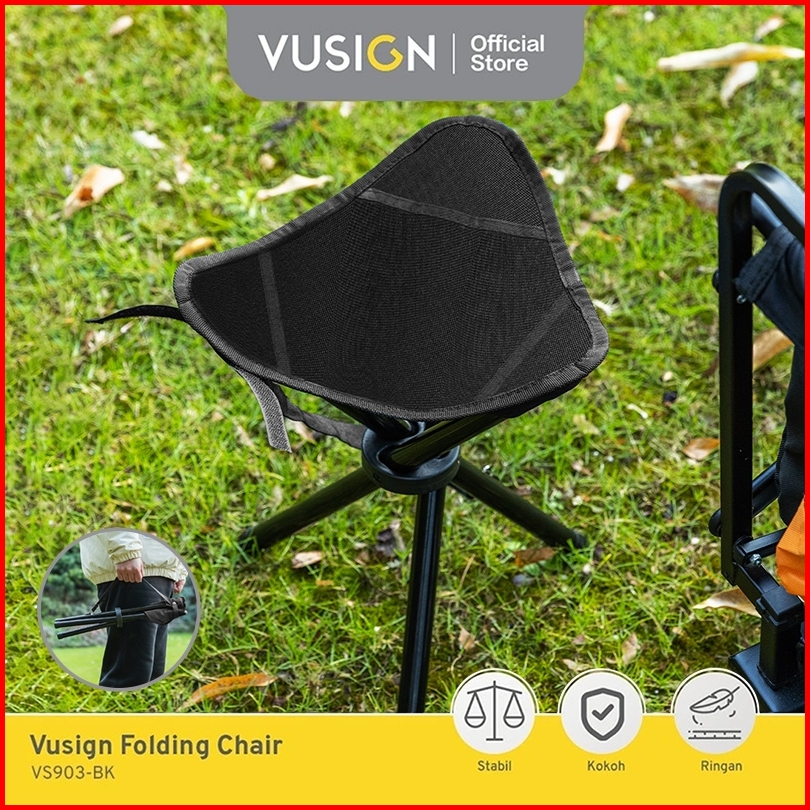 Vusign Folding Chair Kursi Lipat Outdoor Camping Mancing Menampung Kapasitas 70-90kg Tanpa Sandaran Vs90xx
