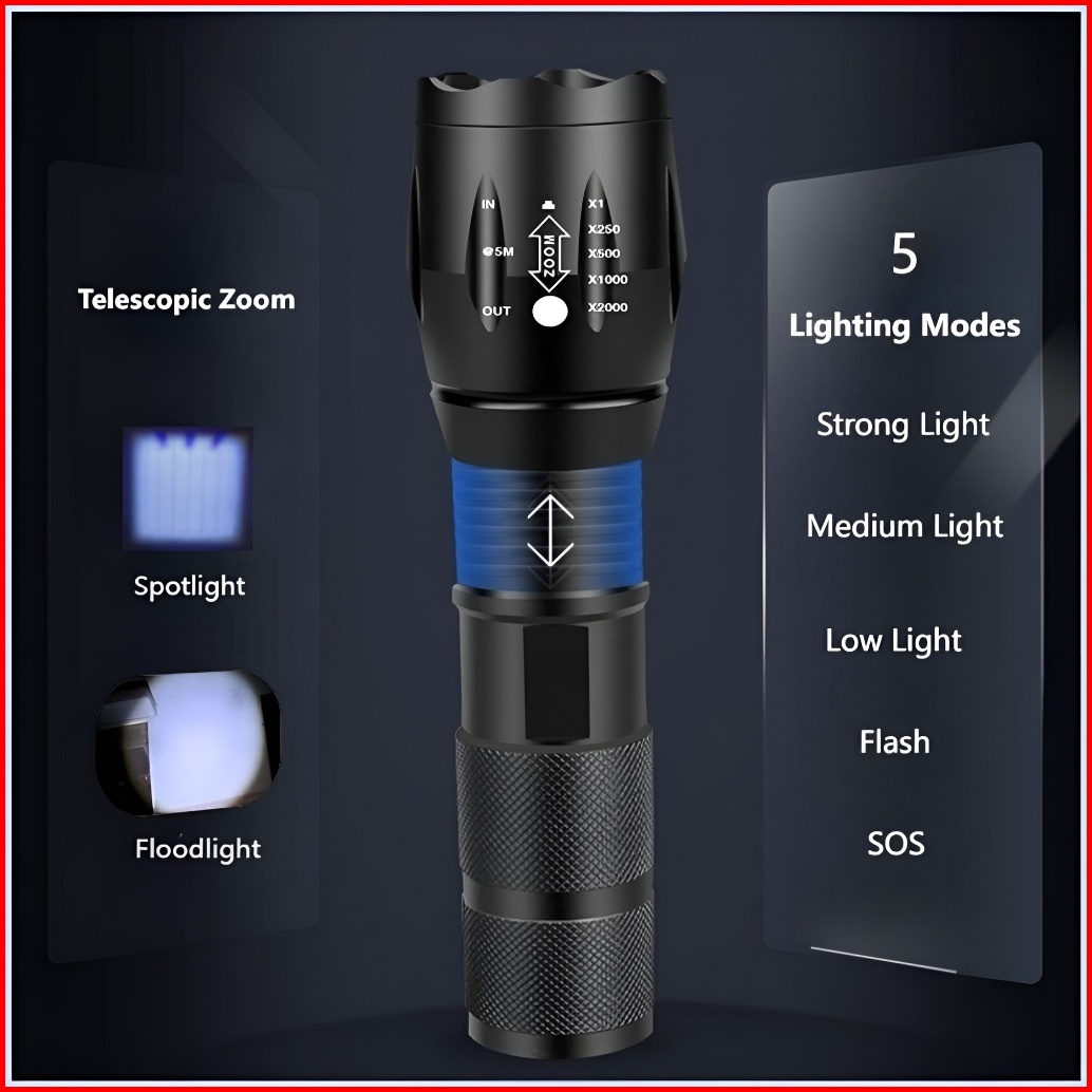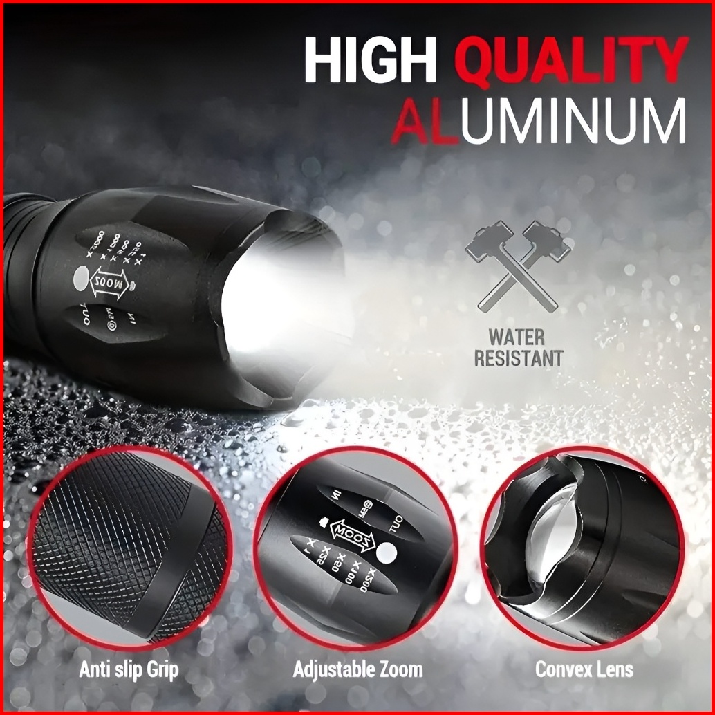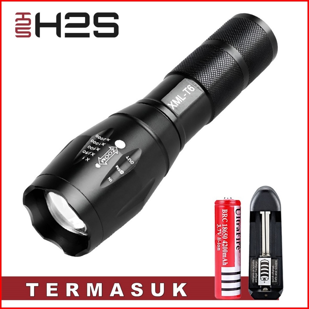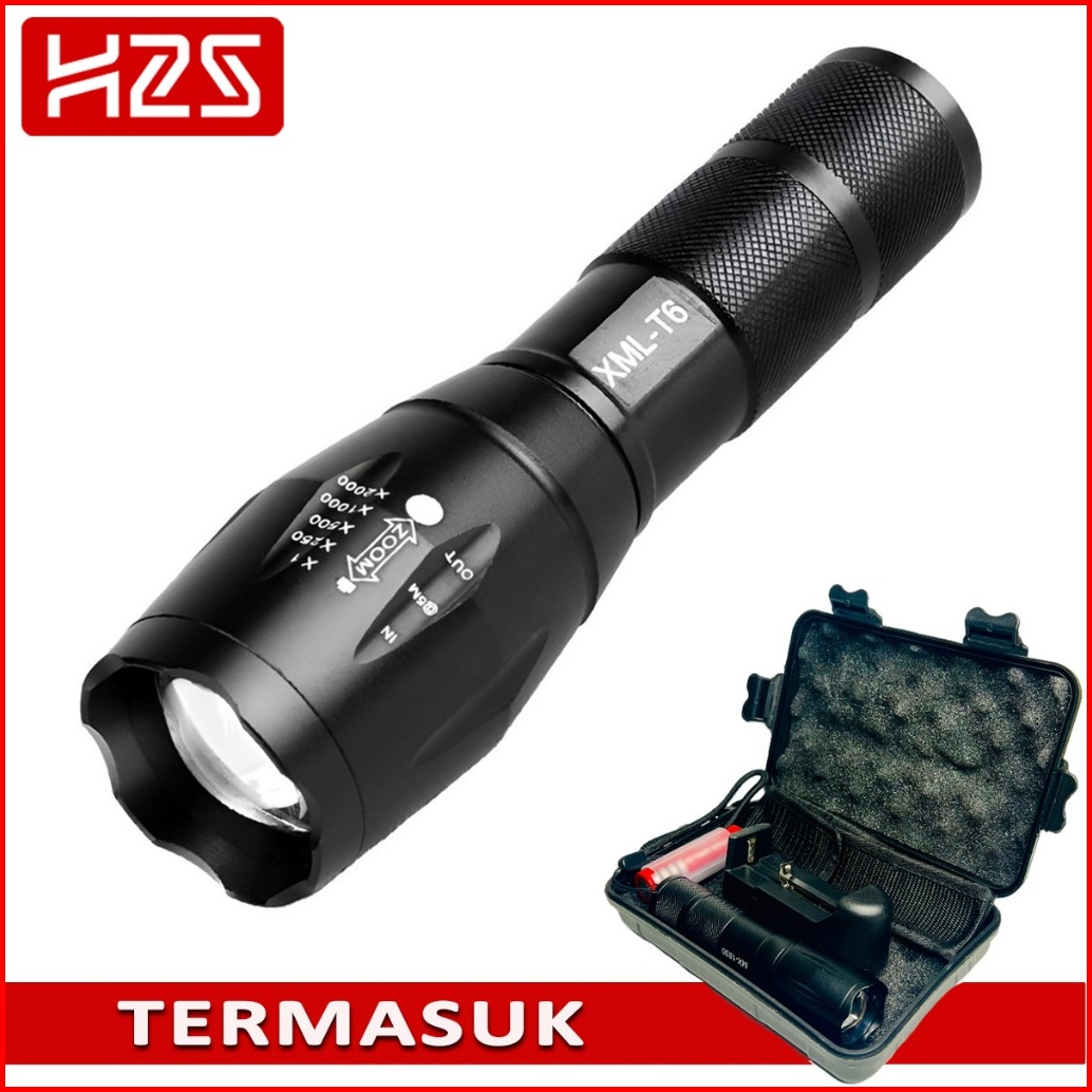 Senter Led Cree Super Terang Xml-t6 E17 2000 - 3800 Lumens Anti Air Jarak Hingga 500m