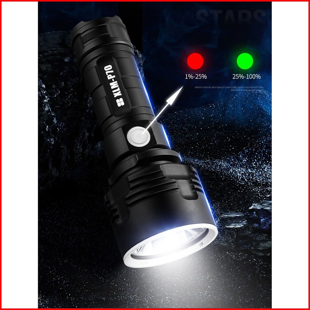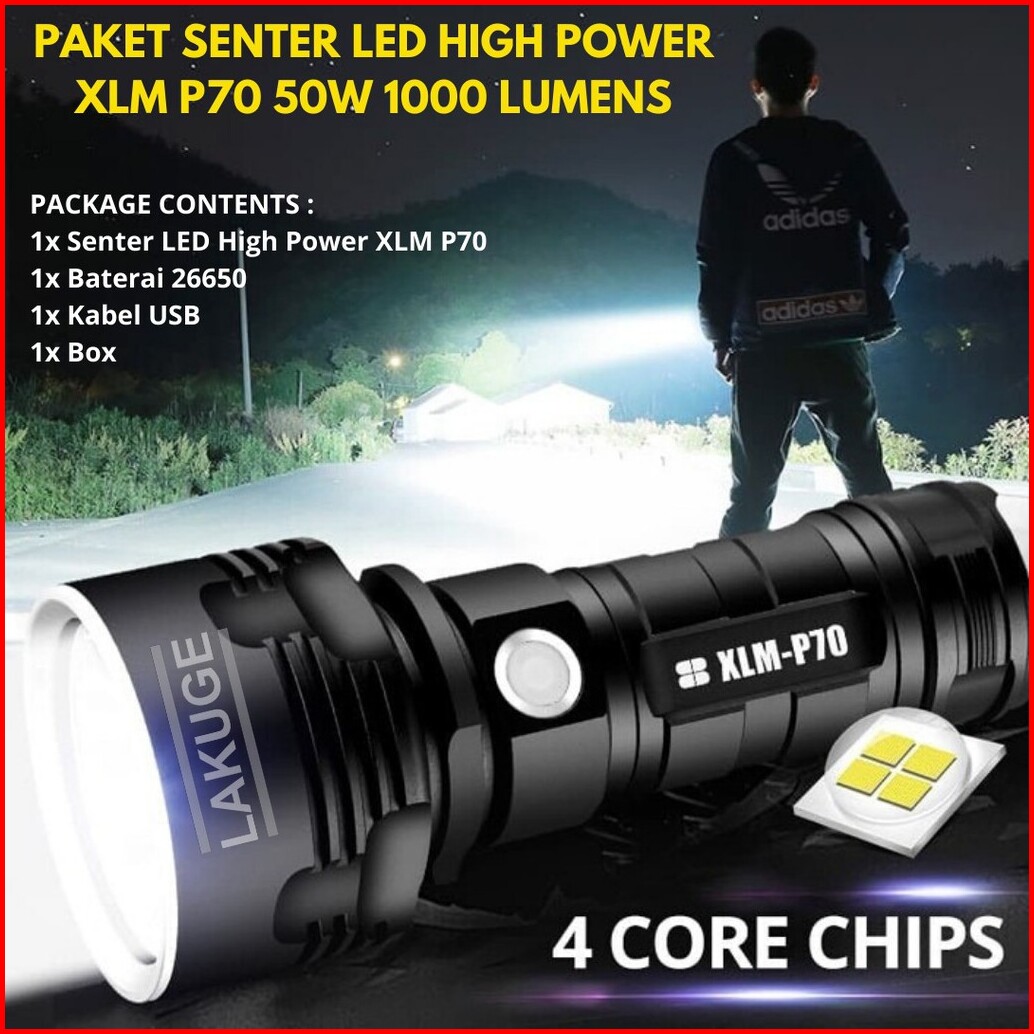 Paket Lengkap Senter Led High Power Xlm P70 50w 1000 Lumens Usb Rechargeable Waterproof
