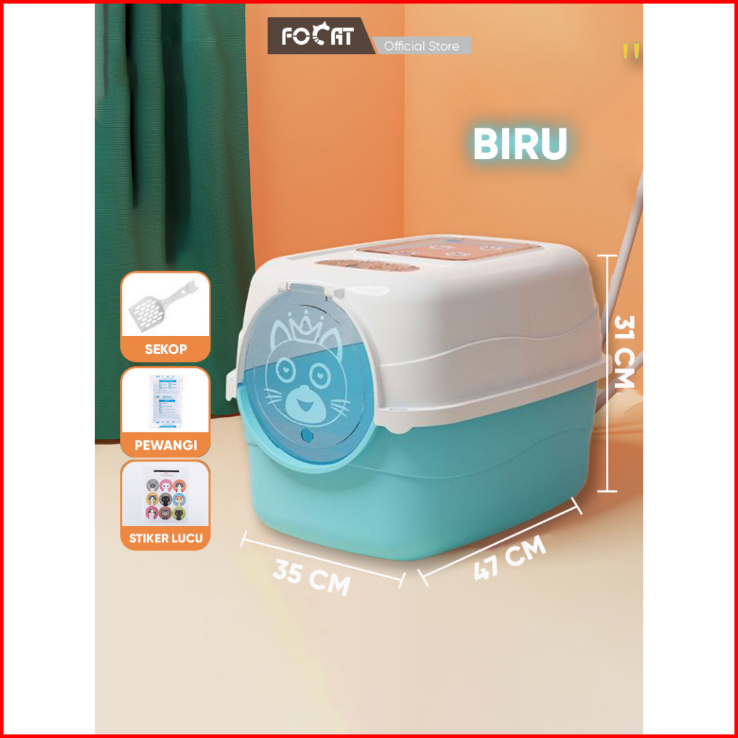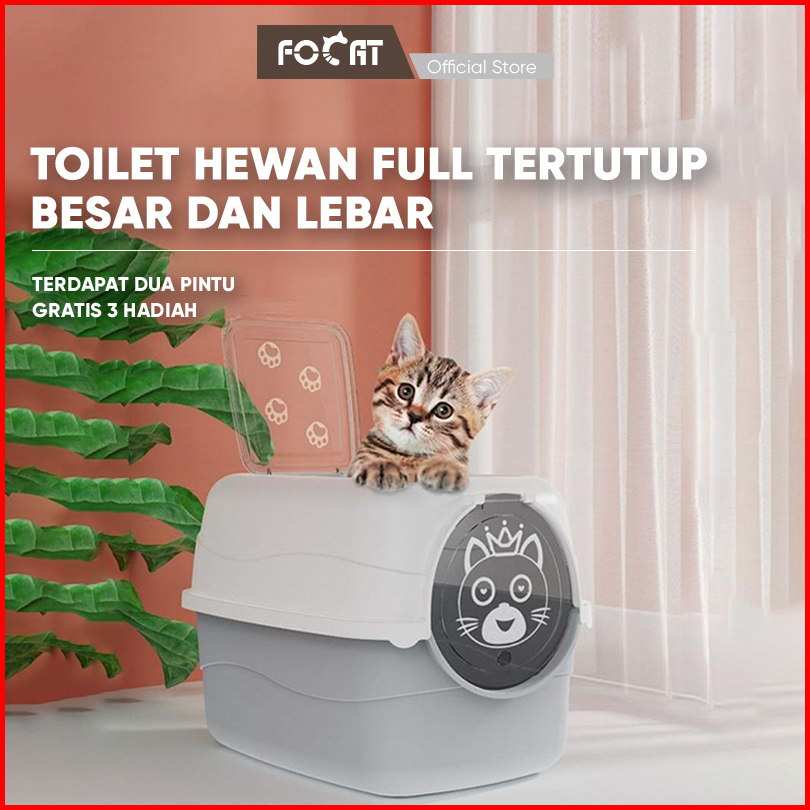Focat Pet Litter Box Kucing Tertutup M62 Bak Toilet Pasir Kucing Besar Free Sekop