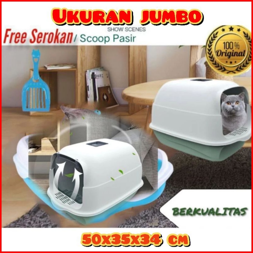 Litter Box Tertutup Toilet Bak Pasir Pup Kucing Anjing Kelinci