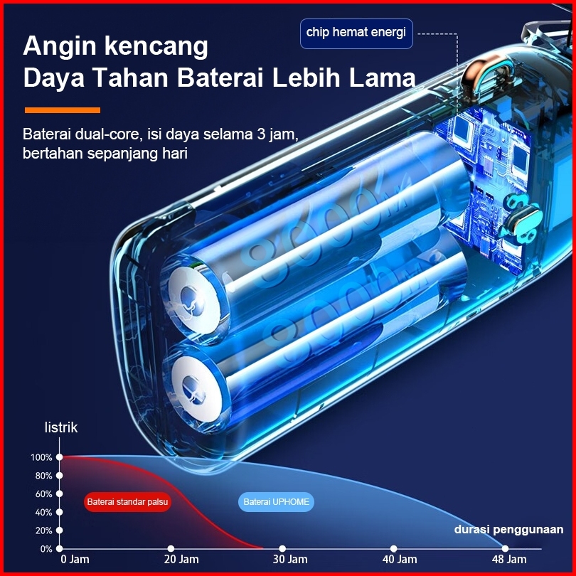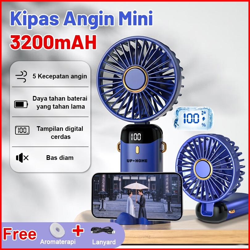 Uphome Kipas Angin Portable Mini Usb 32000mah Lipat Led Display Portable Handheld Fan 5-speed Wind Leher Kipas Dengan Ar