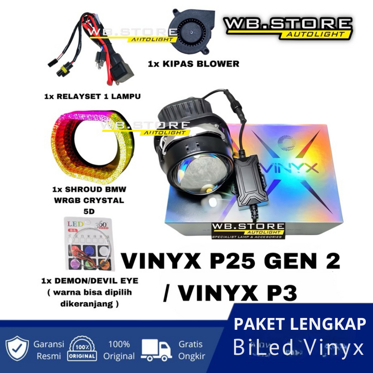 PAKET LENGKAP BiLed Vinyx P3 P25 2.5 INCH 60 WATT 50 WATT PURPLE LENS Jauh Dekat Flat Cut 2.5 INC vinyx p3 50 watt biled