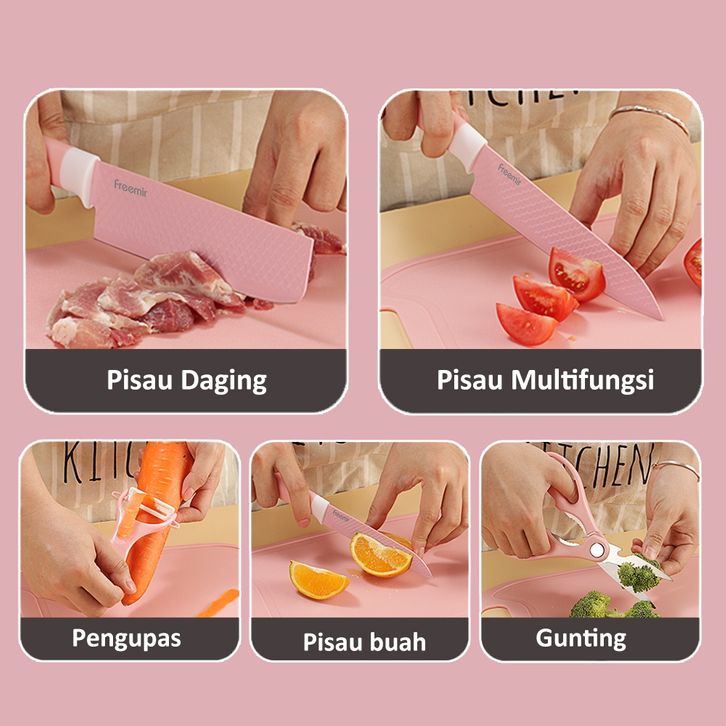 PISAU DAPUR PISAU BUAH PISAU SERBAGUNA PISAU DAGING ANTI KARAT PISAU STAINLESS STEEL FREEMIR 5PCS TAJAM PRODUK BESTSELLE