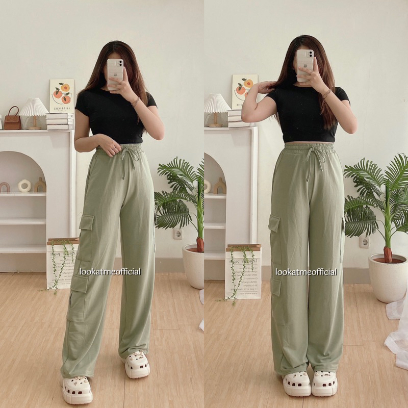 LOOKATMEOFFICIAL - KELLY CARGO PANTS - CELANA KULOT KARGO WANITA - LOOSE CARGO PANTS
