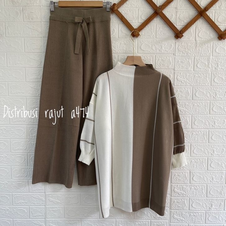 PROMO ONESET DRESS FADILLA ATASAN SETELAN CELANA KULOT RAJUT WANITA