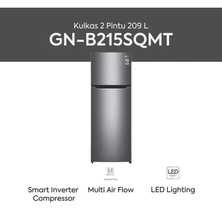 LG kulkas 2 pintu smart inverter 209L - GN B215SQMT
