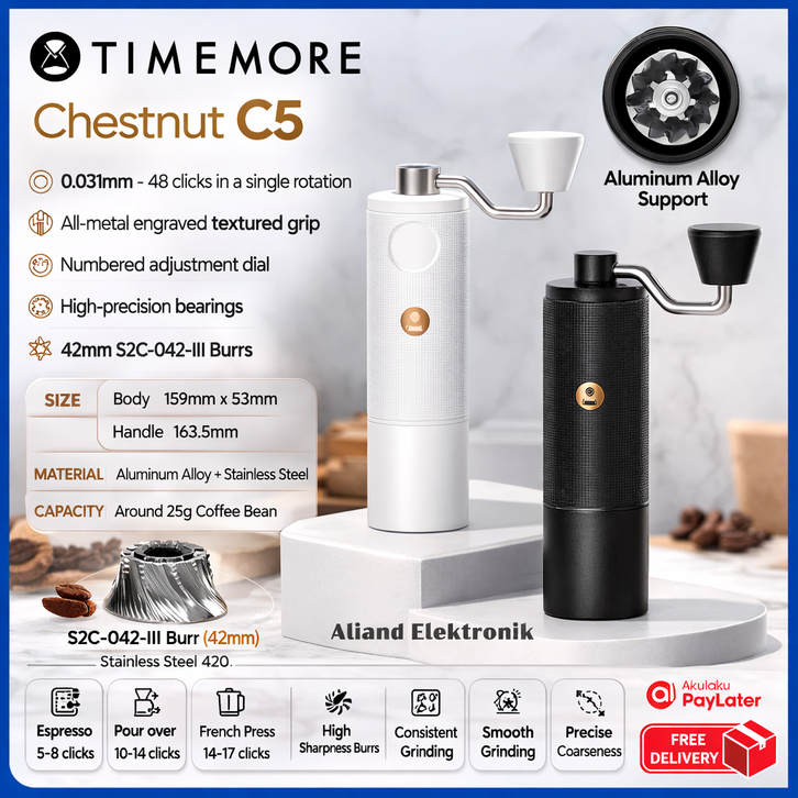 Grinder Timemore Chestnut C5 Hand Coffee Beans Grinder Kopi Manual 42mm III - Alat Giling Biji Kopi 100% Original