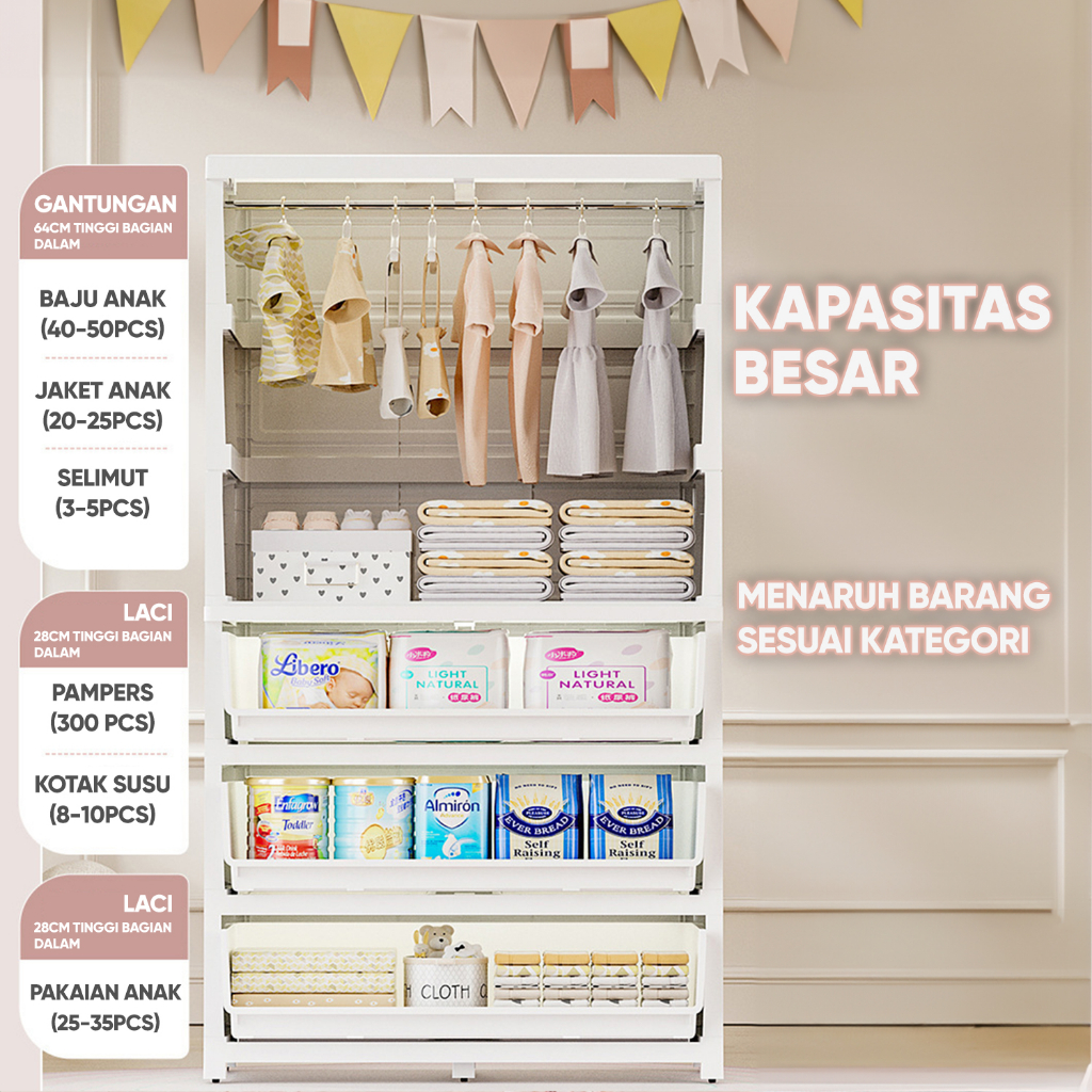 Lemari Pakaian Plastik Jumbo Anak Bayi Baby Minimalis 5 Tingkat Lemari Baju Susun Anak Bayi C80-C96